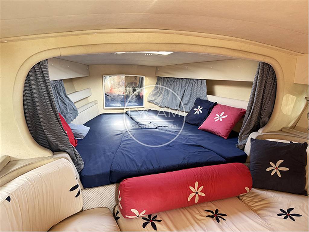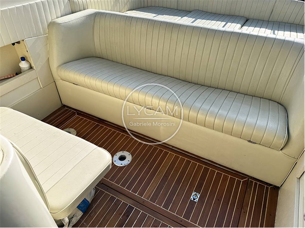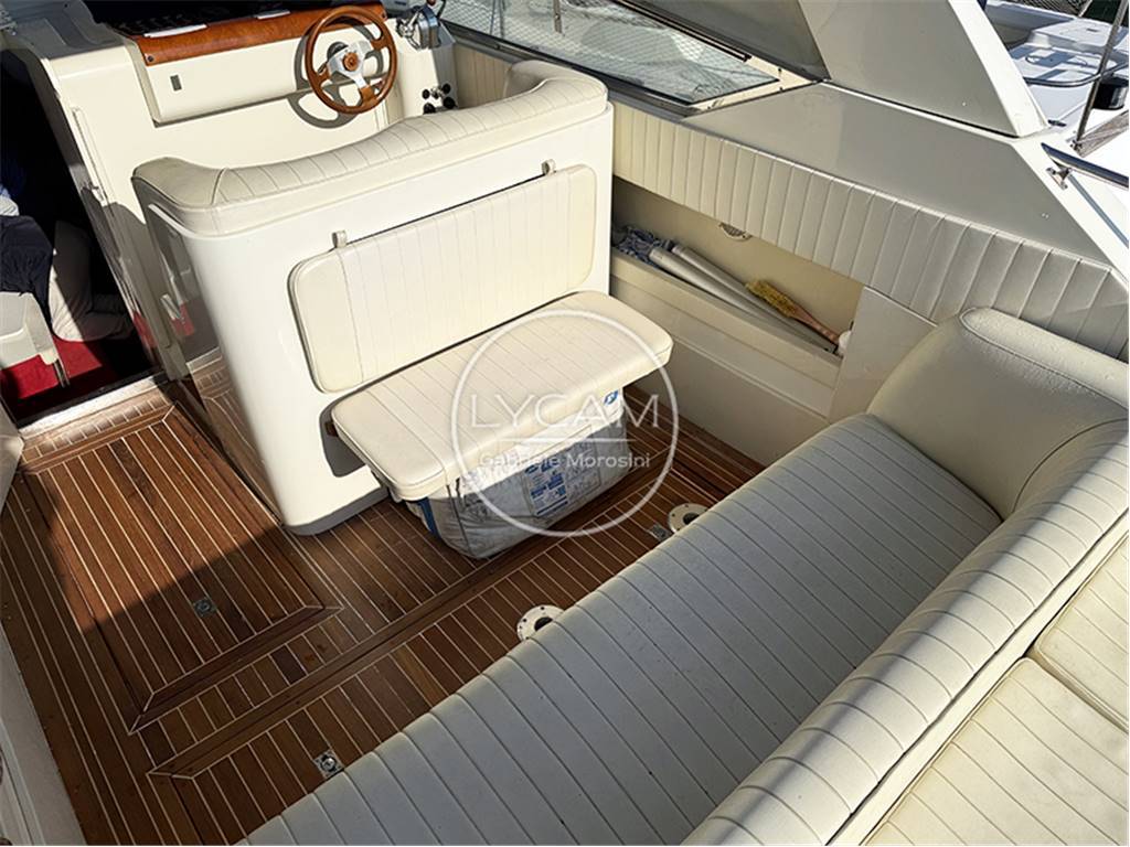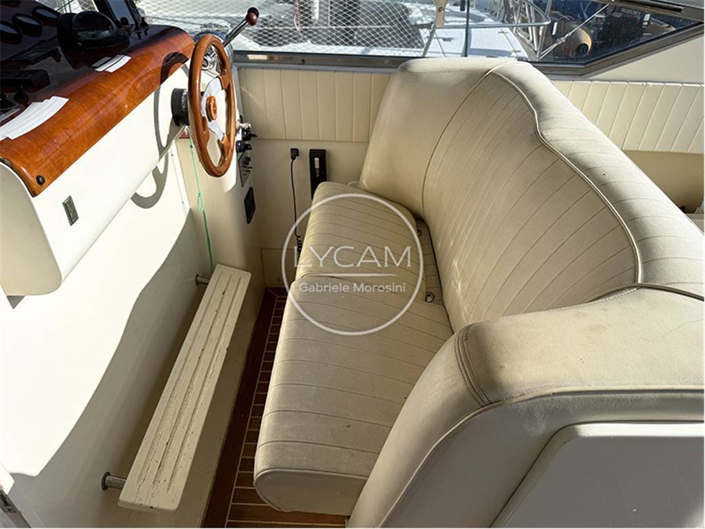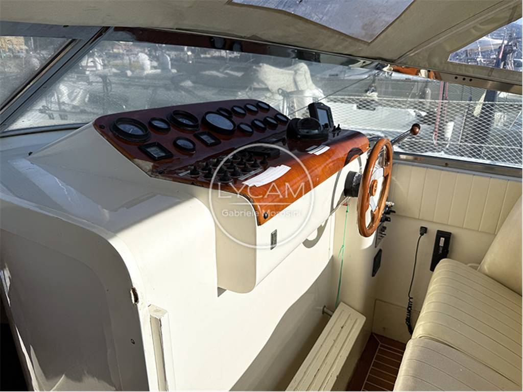 Colombo è da sempre sinonimo di barche esclusive per un ristretto pubblico di fortunati armatori. Il Colombo 36 è un cabinato di impostazione sportiva dal profilo allungato ma non stretto. La prua affusolata si caratterizza per un leggero cavallino rovescio. L’attenzione per i dettagli si può ritrovare ad esempio nei particolari metallici esterni realizzati in acciaio inossidabile così come l’avveniristico parabrezza caratterizzato da un unico sottile montante centrale. Questo Colombo si presenta in buone condizioni generali. Diversi i lavori di manutenzione svolti: