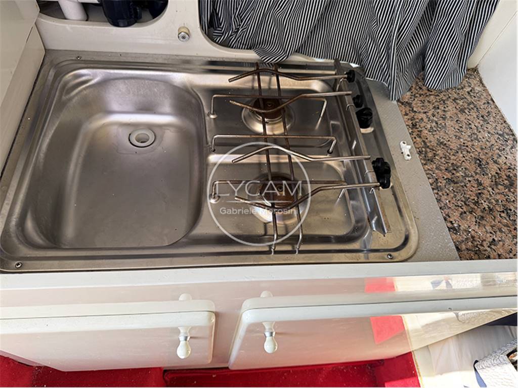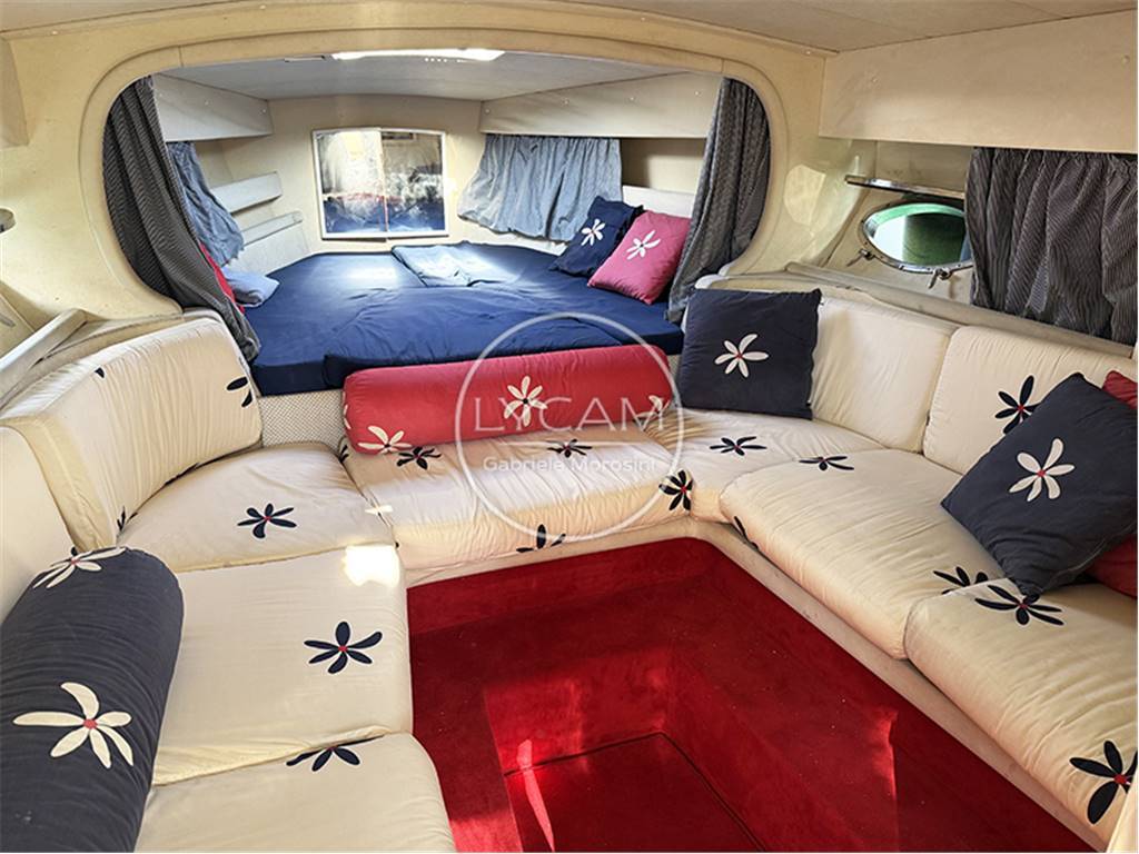 Internamente, a lato delle scale vi è il locale toilette. La dinette è composta da divano a dritta e di fronte il blocco cucina con ripiano per fornello e lavello. Verso prua vi è la dinette a U trasformabile in letto matrimoniale.