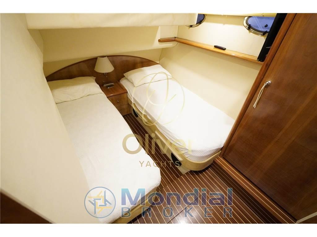 La barca privilegia la vivibilità: fly ampio e sfruttabile, pozzetto funzionale e ben collegato al salone, passavanti comodi e una distribuzione esterna che rende la vita a bordo semplice e naturale. Non è una barca “di immagine”, ma un fly che punta sulla sostanza e sui volumi.