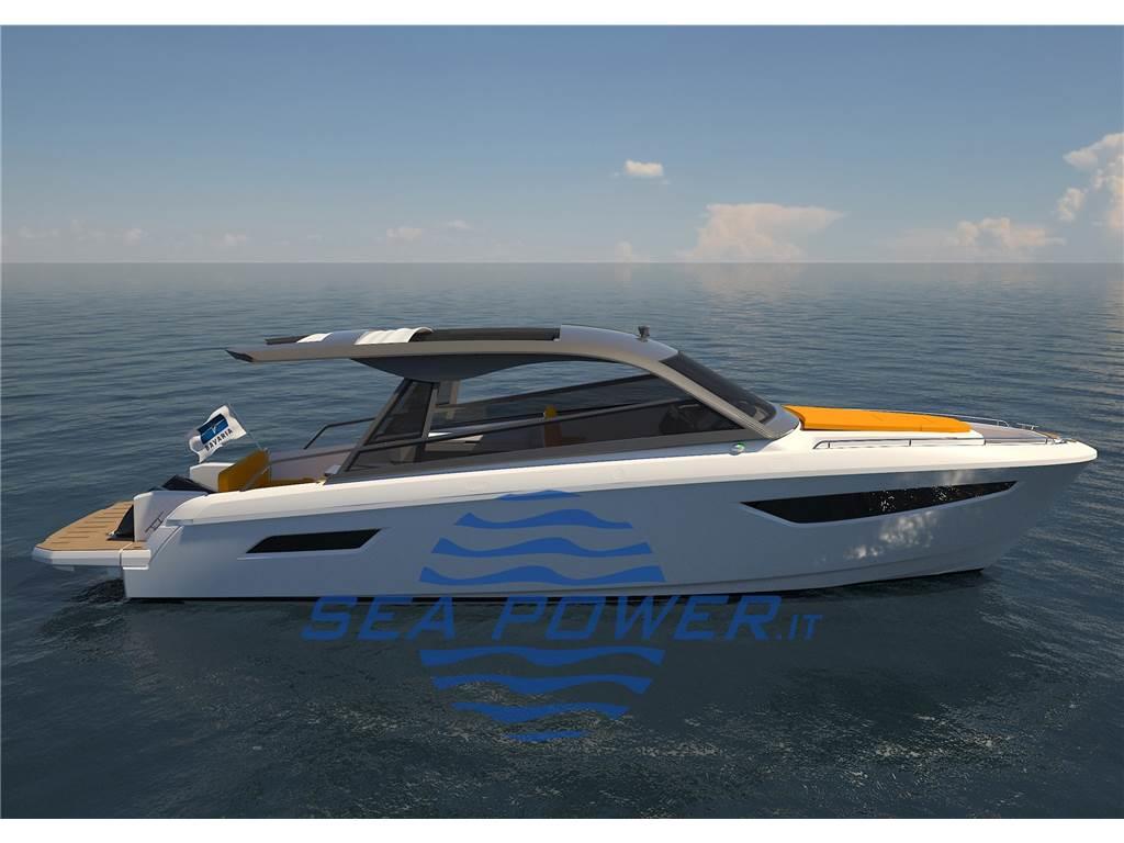 Accessori: Axius Joystick, Prendisole di prua, Salpa ancore elettrico, ancora 16 kg con catena 50 m, Doccia esterna, elica di prua, wetbar con lavello e coprilavello, frigo nel pozzetto 80 l, fornello a 2 fuochi nel pozzetto, Tavolo nel pozzetto trasformabile in prendisole, Luci esterne ed interne e sotto consolle, veneziane in cabina, Fusion marine audio package, stereo e casse, Luci subacquee, Predisposizione tv in salone, sensore acqua nel serbatoio carburante, 2 simrad G012 con display touchscreen, VHF, teak nel pozzetto, teak nei passaggi laterali, plancetta maggiorata in teak idraulica, cuscineria Hitch con ricami a diamante, tavolo in cabina trasformabile in letto, faro di ricerca, riscaldamento 4 kw, serbatoio diesel 60 l addizionale, Hard Top.