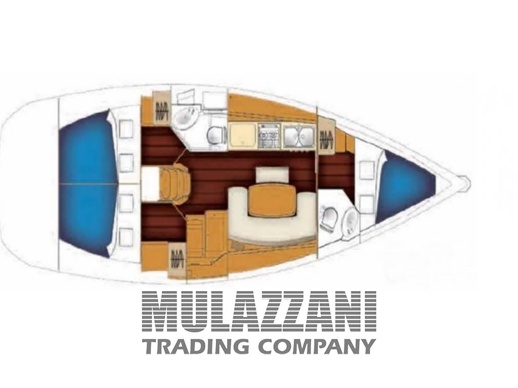 2 Matrimoniale italiana, 1 Cucina, 2 Toilette doccia no bidet, 1 Matrimoniale a V di prua, 1 Dinette Trasformabile