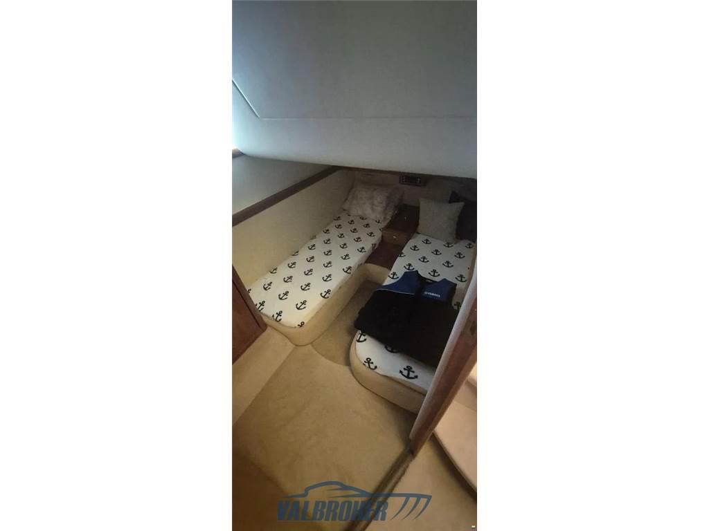 Flybridge proveniente dal cantiere italiano. 2x Volvo Penta D9 in linea d'asse. Cabina matrimoniale a prua, cabina ospiti matrimoniale, cabina ospiti con letti separati e cabina marinaio.