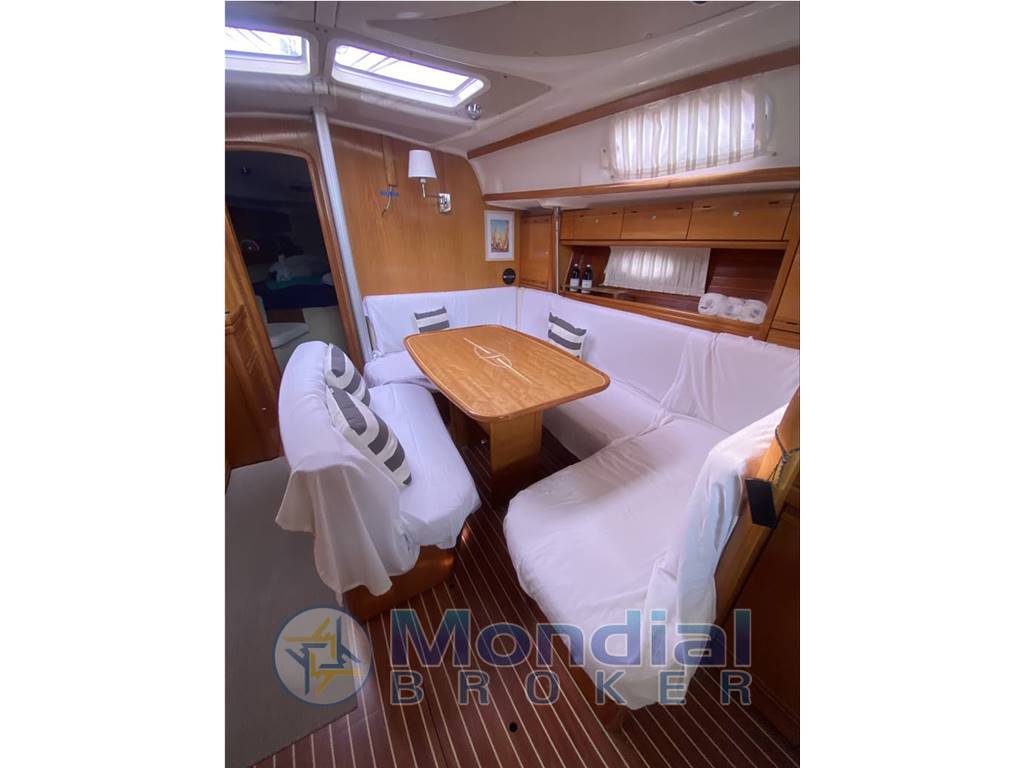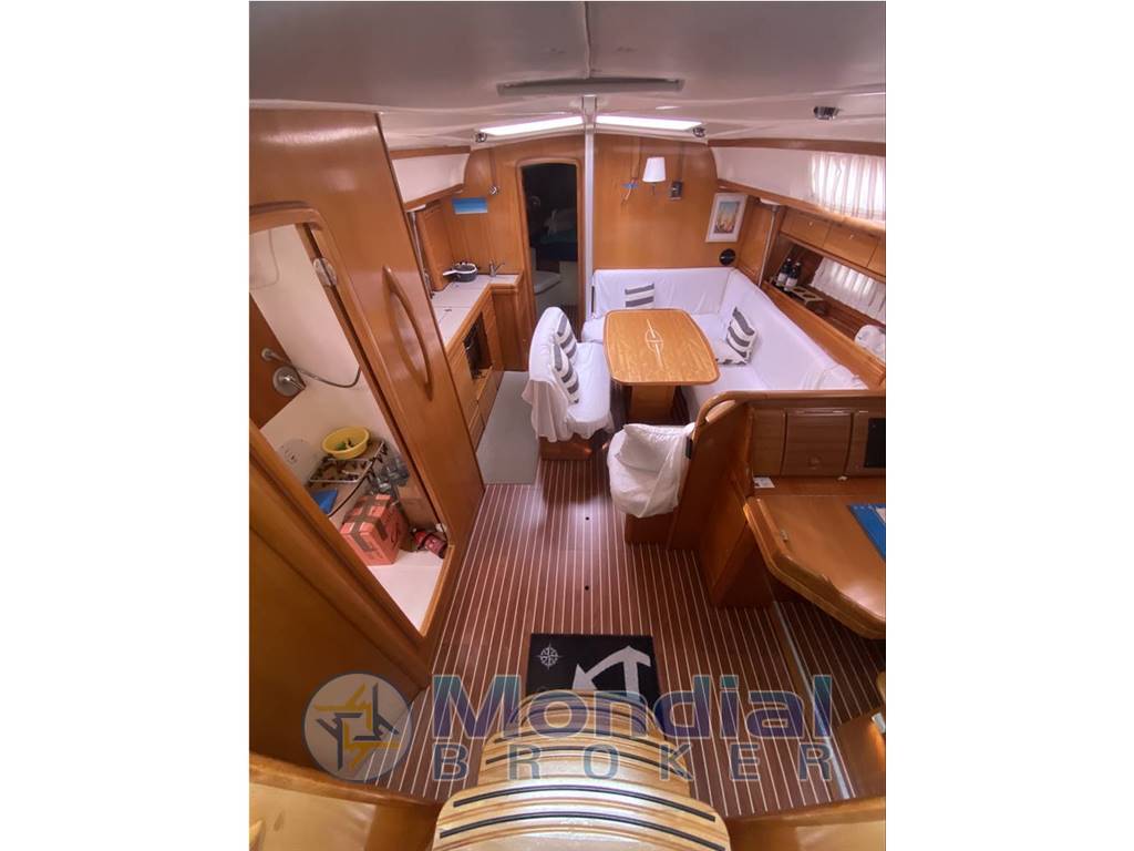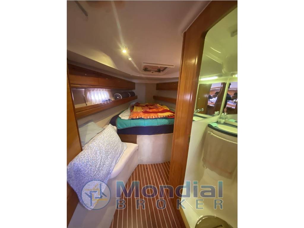 Gli interni sono composti da un ampio salone con con divano a "C" sulla dritta che circonda il tavolo, la zona carteggio e la cucina a murata, 2 cabine a poppa, bagno di servizio e cabina a prua con bagno dedicato.