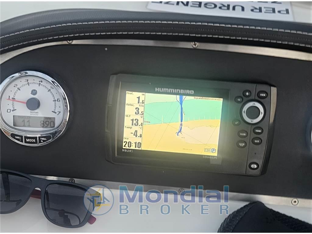 Allarme motore, Ancora, Batterie, Bussola, Contaore, Doccia esterna, Ecoscandaglio, Luci di cortesia, Luci di navigazione, Plotter con antenna GPS, Pompa di sentina automatica, Ponte in teak, Pozzetto Teak, Presa 220V banchina, Salpa Ancore Elettrico, Scaletta da bagno, Tromba