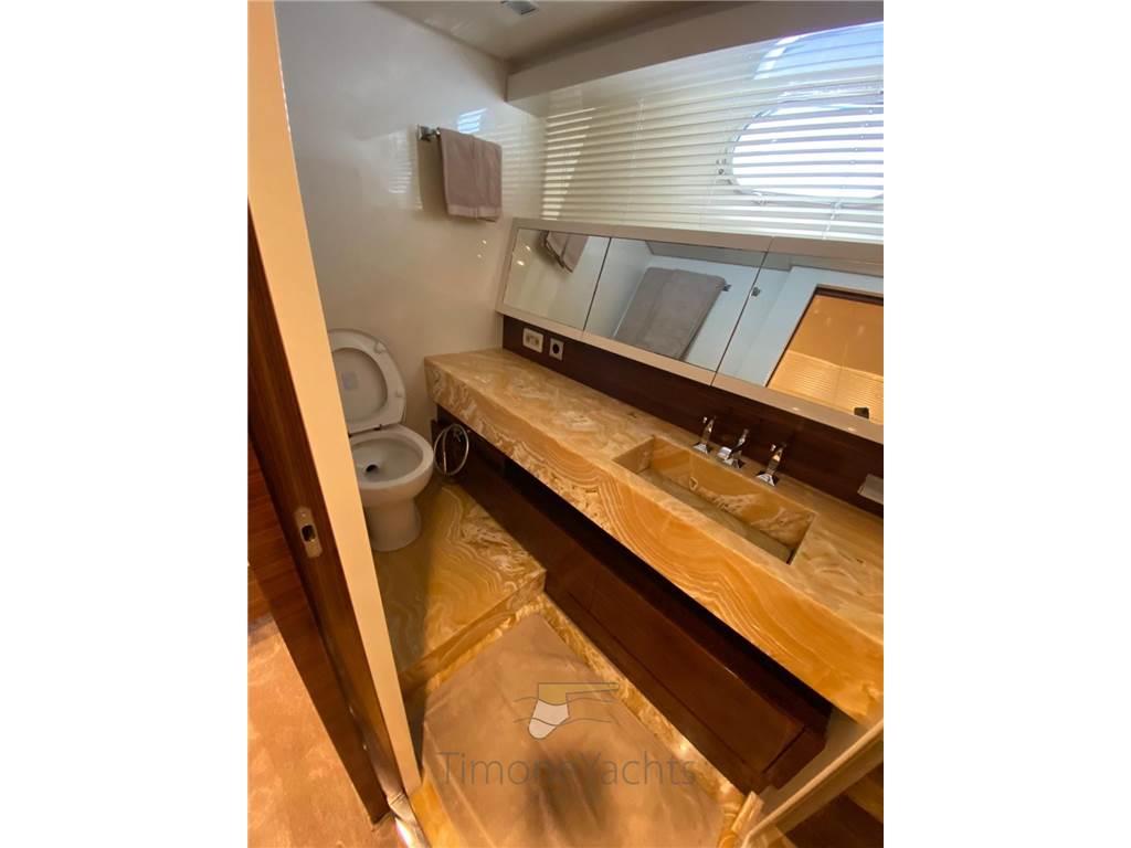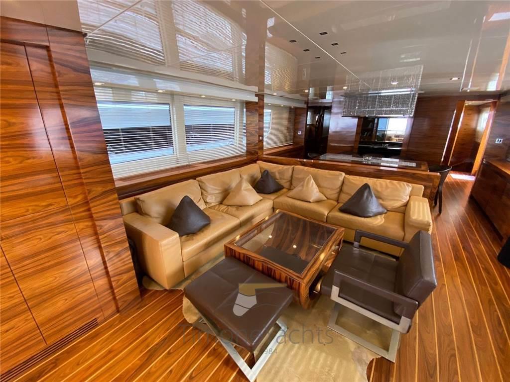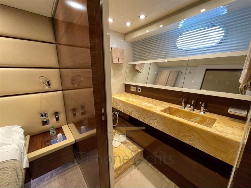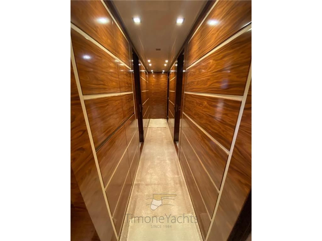 Equipped with CAT C32 DITA engines, the yacht is capable of speeds of up to 28 knots. The flybridge