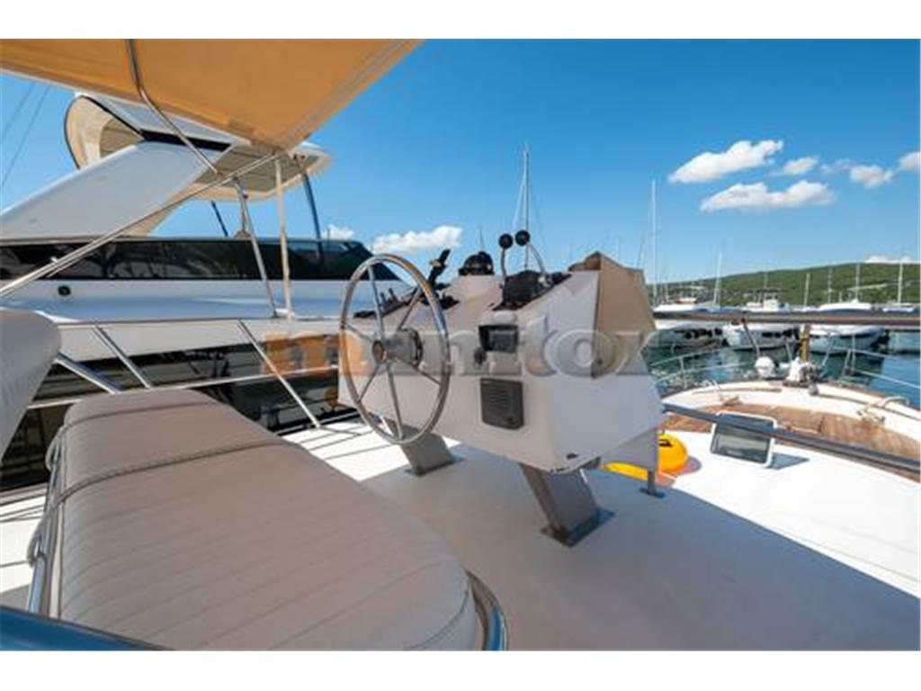Aria condizionata, Impianto audio, Pilota automatico, Piattaforma da bagno, Caricabatterie, Elica di prua, Doccia in pozzetto, Bussola, Cuscini di coperta, Ecoscandaglio, El. throttle control, El.anchor windlass, Parabordi, Generatore, Plotter GPS, Serbatoio acque grigie, Hard Top, Riscaldamento, Impianto acqua calda, Passerella idraulica, TV LCD, Teak di poppa, Elica di poppa, Scaletta bagno, Teak in pozzetto, VHF
