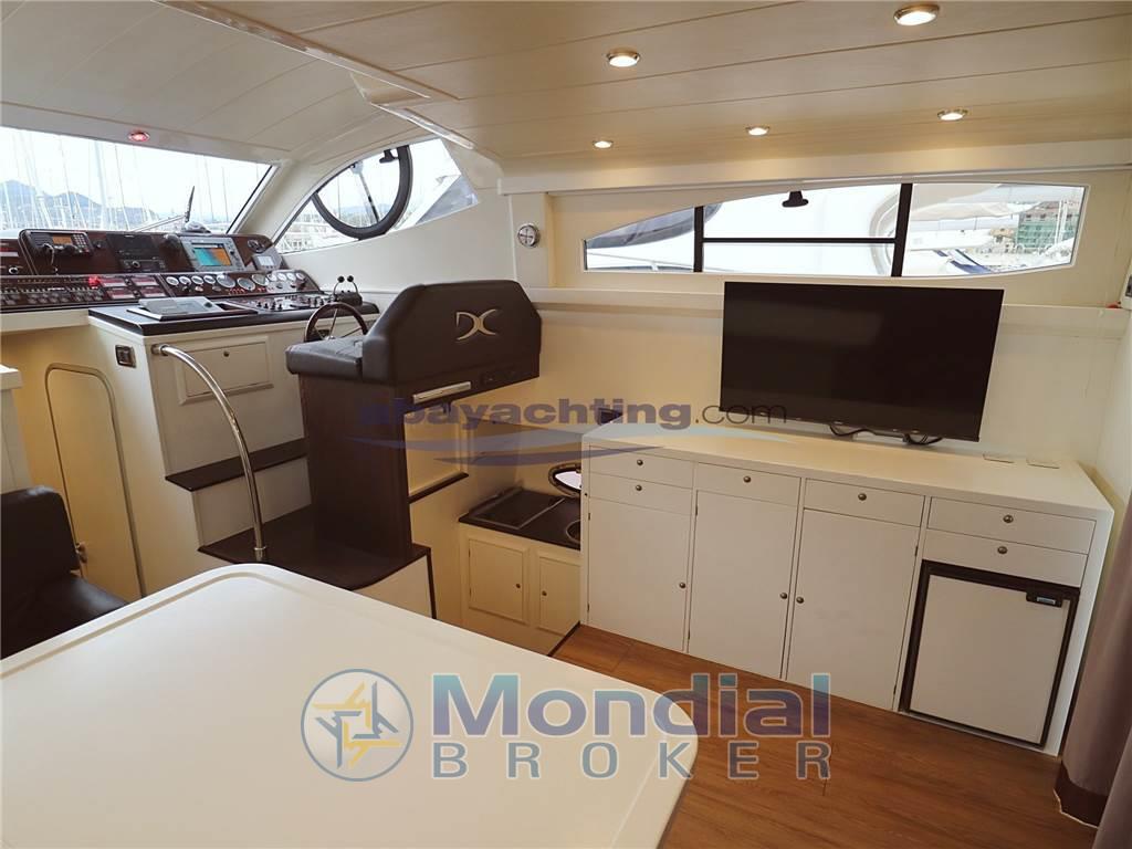 Accessoriata con: generatore da 5 kw, aria condizionata (caldo/freddo), elica di prua, passerella idraulica, porta di ingresso a poppa scorrevole, cuscineria di prua del 2024, bimini sul fly ed elettronica interna e sul fly completa di radar e pilota automatico.