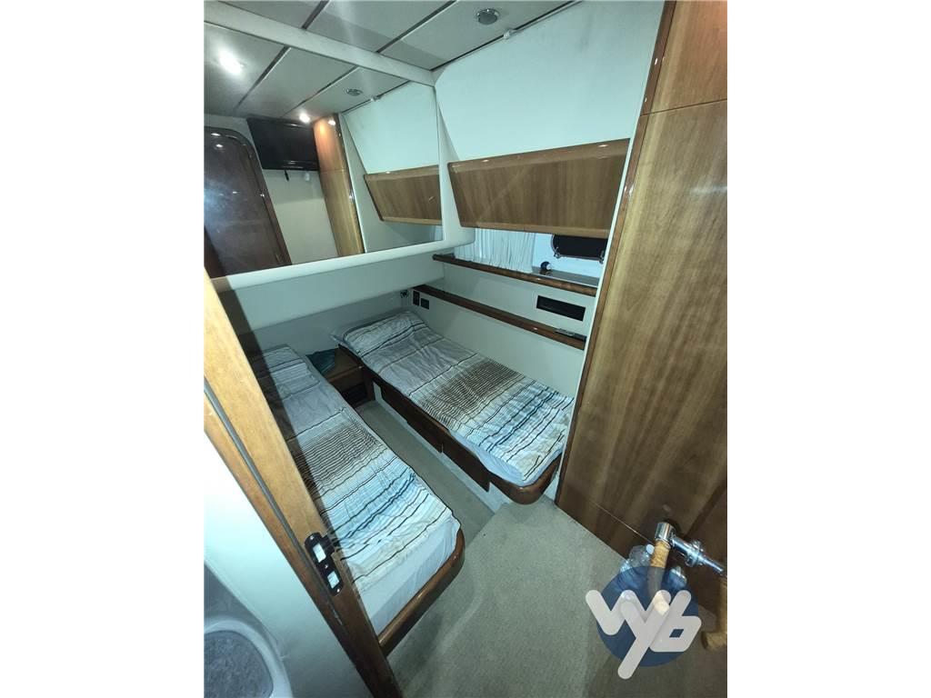 1 Matrimoniale italiana, 2 Doppia in piano, 1 Cabina equipaggio, 1 Dinette, 1 Toilette Equipaggio, 2 Toilette doccia no bidet