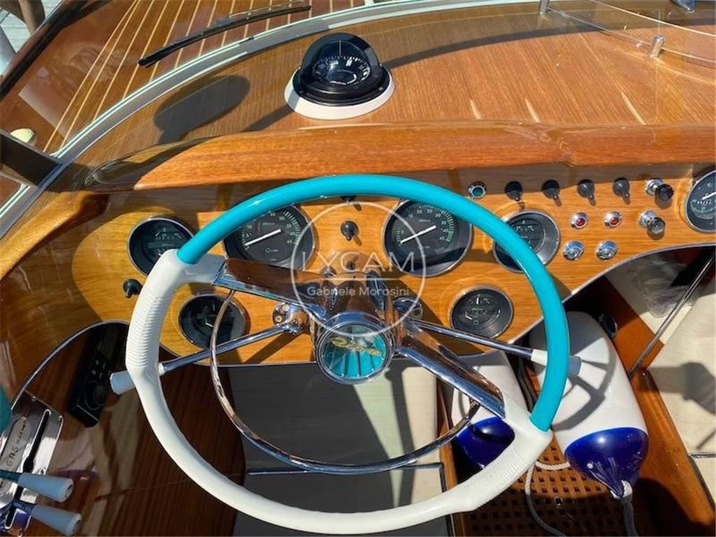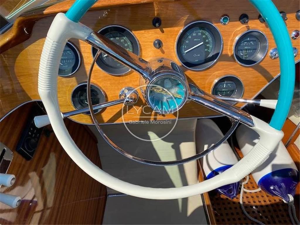 Luci di navigazione, avvolgi ancora originale, pompe di sentina automatiche, autoclave, doccetta, faro orientabile, scaletta originale mogano, capote cabriolet a scomparsa, telo copertura totale, palo sci nautico, asta bandiera, invaso in legno originale, sospendite, dotazioni di sicurezza.