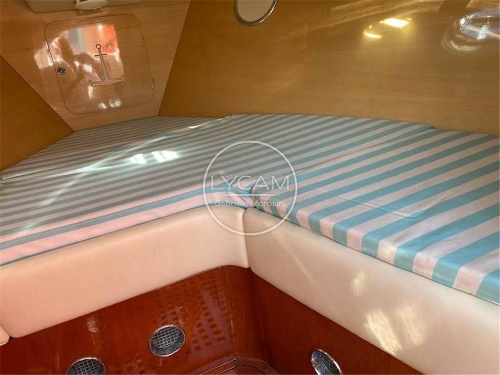 Pozzetto con doppia fila di sedili e posto guida stand up, prendisole poppiero, cabina a prua con 2 cuccette.