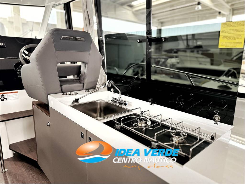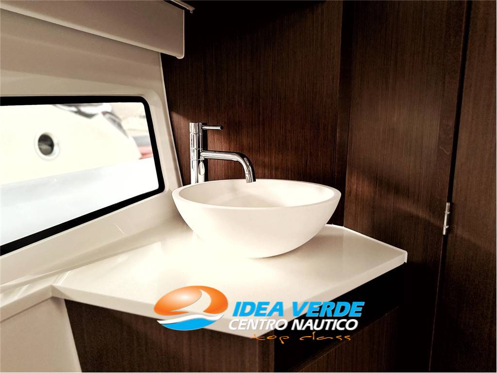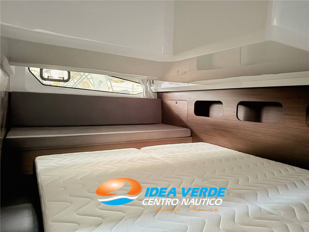 La cabina di prua è spaziosa e rifinita con materiali di qualità, offrendo una zona notte confortevole con cuccetta matrimoniale e ampi spazi dedicati allo stivaggio. Anche la cabina di poppa, quando prevista, è studiata per offrire privacy e comodità agli ospiti. Il bagno interno è completo e ben progettato, con WC marino, lavabo e spazio utile per gli effetti personali. Nel complesso, gli interni dell’Antares 11 combinano praticità, eleganza e comfort, rendendo l’imbarcazione perfetta per soggiorni prolungati in mare.