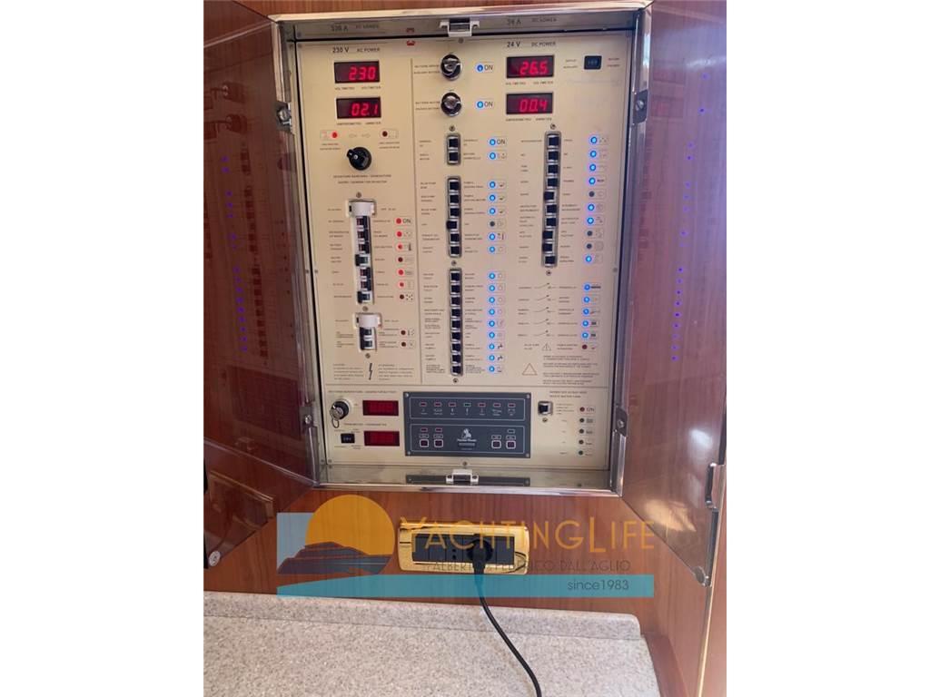 Allarme motore, Allarme sentina, Ancora, Angolo barra, Antenna radar, Autoclave, Autogonfiabile, Batterie, Bussola, Caricabatterie, Doccia esterna, Ecoscandaglio, Elica di prua - bow thruster, Faro orientabile, Flap idraulici, Garage per tender, Indicatori Flaps, Luci di cortesia, Passerella (idraulica), Piattaforma, Pilota automatico, Pompa di sentina automatica, Pompa di sentina elettrica, Porta ingresso, Pozzetto Teak, Presa 220V banchina, Radar, Radio VHF, Rollbar, Salpa Ancore Elettrico, Scaletta da bagno, Tavolo pozzetto, Tromba, Winch tonneggio di poppa