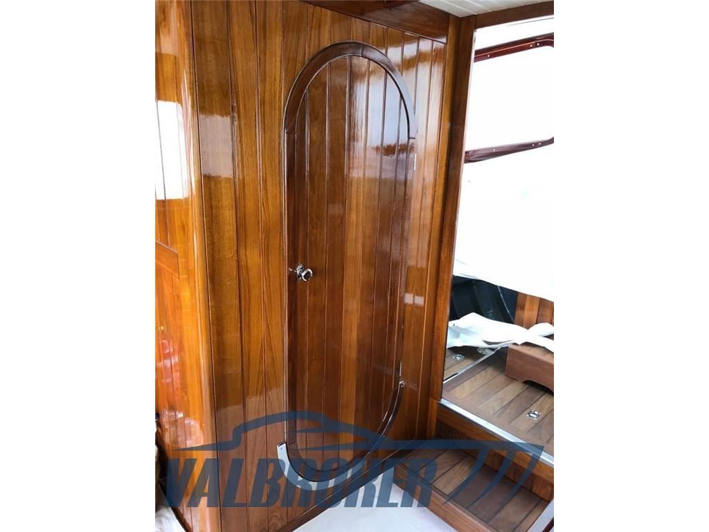 Boiler, Copriscafo, Cucina (creata da un mobile in mogano), Frigorifero interno, WC marino elettrico, L’originale parabrezza che era scomparso quando la plancia venne chiusa è stato ricostruito in mogano e rinforzato da una cornice di acciaio inox. Tutto il bordo è stato rifatto in mogano massello come le paratie e tutte le doghe del locale di poppa come la coperta in pregiato Teak. Anche il bagno è stato rifatto a nuovo come l’impianto elettrico, idraulico e quello delle pompe di sentina.
