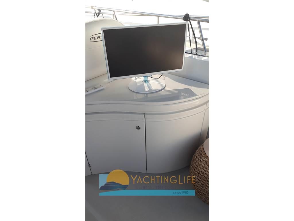 Altoparlanti, Aria condizionata (anche nel pozzetto), BBQ/ Grill, Boiler, Copripozzetto, 2 Cucina (interna ed esterna), Cuscineria completa, Digitale Terrestre, Frigorifero esterno, Frigorifero interno, Impianto TV, 2 Piastra in vetroceramica (a induzione), Prese interne 12v, Prese interne 220v, Riscaldamento, Stereo, Telo copriconsolle, Telo coprisedile, Tendalino, 2 TV (anche esterno fisso), WC marino elettrico, Zattera di salvataggio