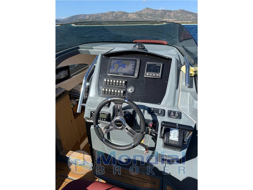 Elettronica: GPS Garmin 9" di ultima generazione e Impianto stereo Fusion per un audio di alta qualità.