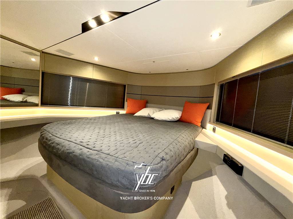 Il Princess V60 si distingue per il suo design raffinato e per spazi studiati per offrire comfort e convivialità. L’ampio pozzetto accoglie gli ospiti con un comodo divano a U, tavolo in teak e un grande prendisole ombreggiato da una tenda elettrica, ideale per rilassarsi a bordo. La dinette, estremamente luminosa grazie alle ampie vetrate e all’hardtop, si integra alla perfezione con la cucina a poppa, completa di ogni comfort e dotata di un pratico frigorifero a colonna. Una finestra apribile collega direttamente la cucina con il pozzetto, creando un ambiente unico. A dritta, un tavolo da pranzo con divanetto completa la zona pranzo, mentre più avanti un grande divano a C guarda verso un mobile con TV da 50”. La postazione di guida, con il caratteristico finestrino elettrico Princess, assicura un’ottima ventilazione e un controllo totale dell’imbarcazione.