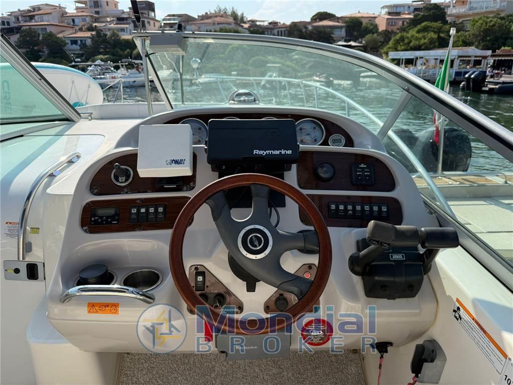 Il Chaparral Signature 310 è un express cruiser che combina linee eleganti, spazi generosi e una qualità costruttiva tipicamente americana. La carena a V profonda assicura stabilità e ottime prestazioni, rendendolo ideale sia per crociere confortevoli sia per uscite giornaliere. La coperta, ben organizzata, offre un ampio pozzetto conviviale e una postazione di guida ergonomica. Gli interni, in eccellenti condizioni insieme alle tappezzerie, comprendono una dinette trasformabile, cucina attrezzata, cabina di poppa indipendente e cabina di prua: ambienti accoglienti e funzionali che garantiscono praticità e comfort a bordo. Completano l’allestimento accessori come elica di prua e aria condizionata caldo/freddo, che ne aumentano ulteriormente la versatilità. Un modello curato nei dettagli, perfetto per chi cerca affidabilità, comodità e stile in un cruiser di questa categoria.