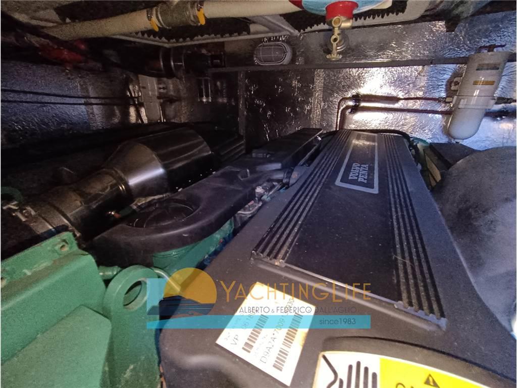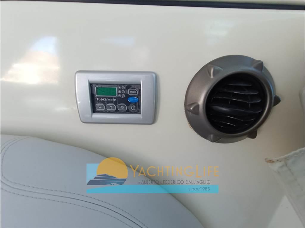 Allarme motore, Allarme sentina, Ancora, Angolo barra, Antenna radar, Autoclave, Autogonfiabile, Batterie, Bussola, Caricabatterie, Comando motori elettronico, Contamiglia, Doccia esterna, Ecoscandaglio, Elica di prua - bow thruster, Faro orientabile, Flap elettrici, Garage per tender, GPS, Hard top, Indicatori Flaps, Lavandino nel Pozzetto, Luci di cortesia, Passerella (idraulica), Pilota automatico, Pompa di sentina automatica, Pompa di sentina elettrica, Pozzetto Teak, Presa 220V banchina, Radar, Radio VHF, Salpa Ancore Elettrico, Scaletta da bagno, Sedile Copilota, Tavolo pozzetto, Tromba, Winch tonneggio di poppa