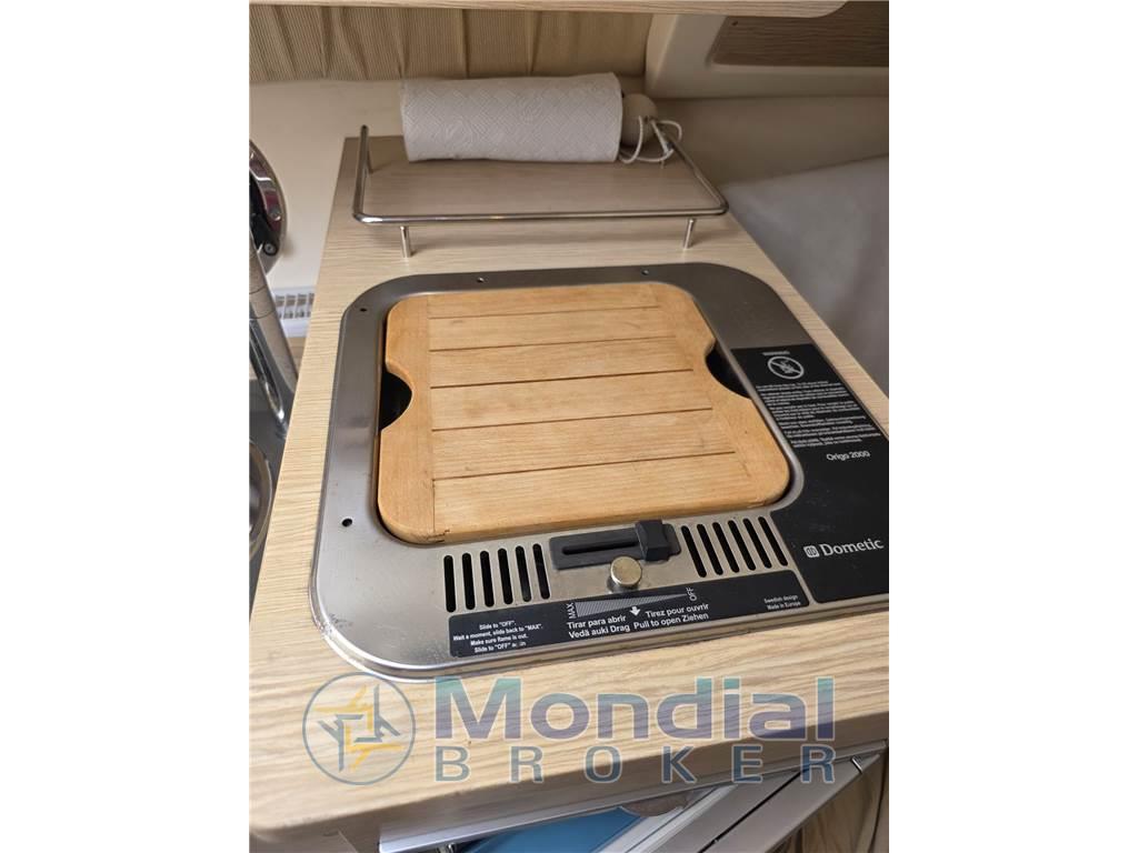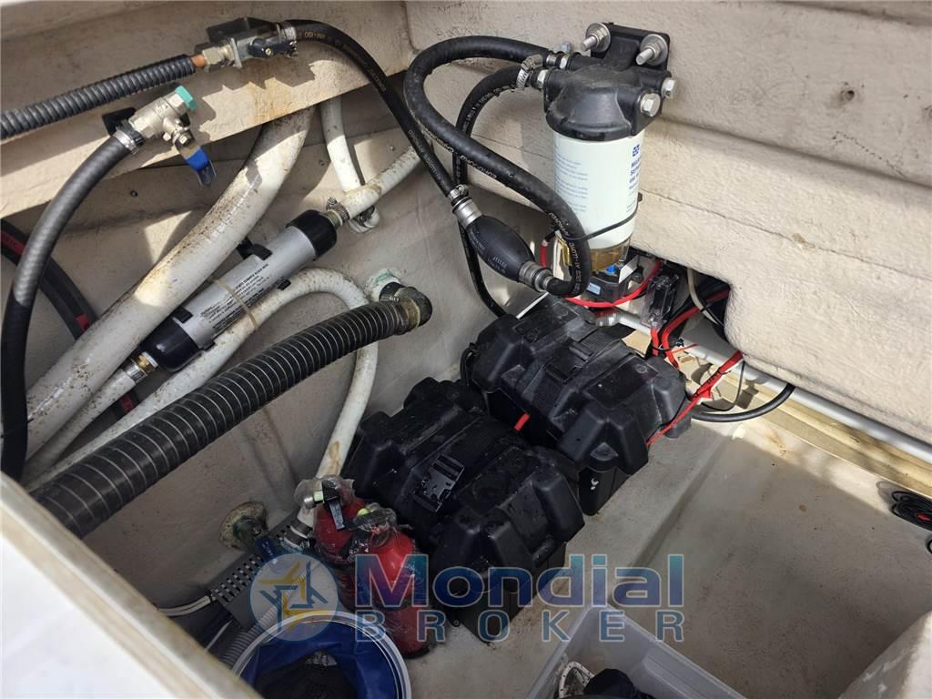Indicatore del serbatoio del carburante, Indicatore del Serbatoio dell’Acqua, Indicatore della pressione dell’olio nel motore, Indicatore della temperatura del motore, Prese interne 12v, Prese interne 220v, Serbatoio Acque Nere, WC marino elettrico.