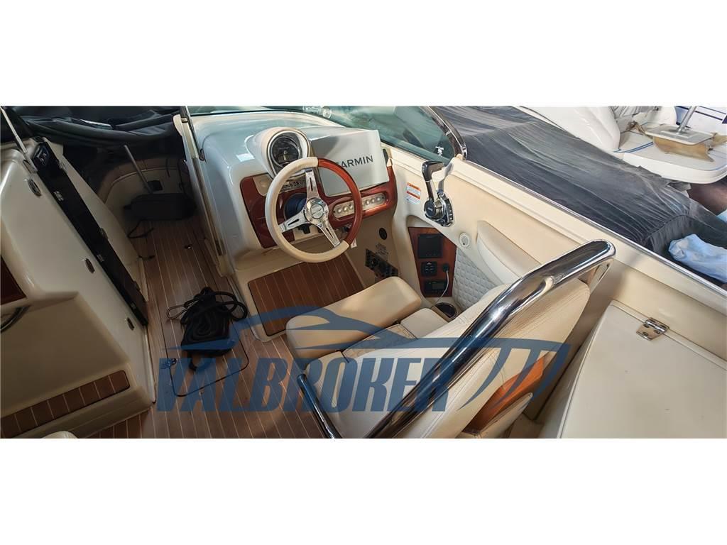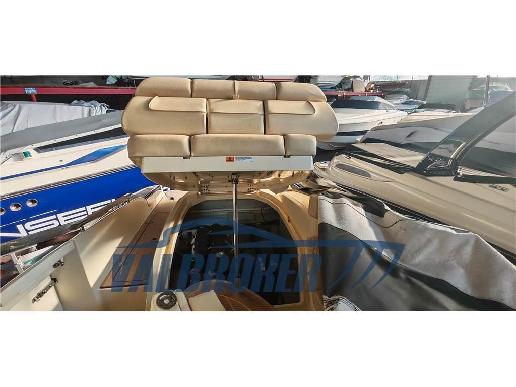 Ancora, Auto Dynamic Trim Interceptor, Autoclave, Batterie, Caricabatterie, Doccia esterna, GPS (Garmin ), Indicatori Flaps (Lenco), Lavandino nel Pozzetto, Piattaforma (teak), Pozzetto Teak, Presa 220V banchina, Rollbar, Scaletta da bagno, Tavolo pozzetto (teak), T-Top (Alluminio con palo per wakeboard)