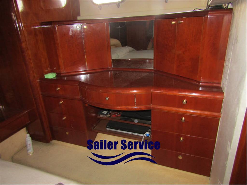 Interni in compensato marino. Quattro cabine (una doppia, una sovrapposti, due matrimoniali). Tre bagni. Più cabina marinaio con bagno