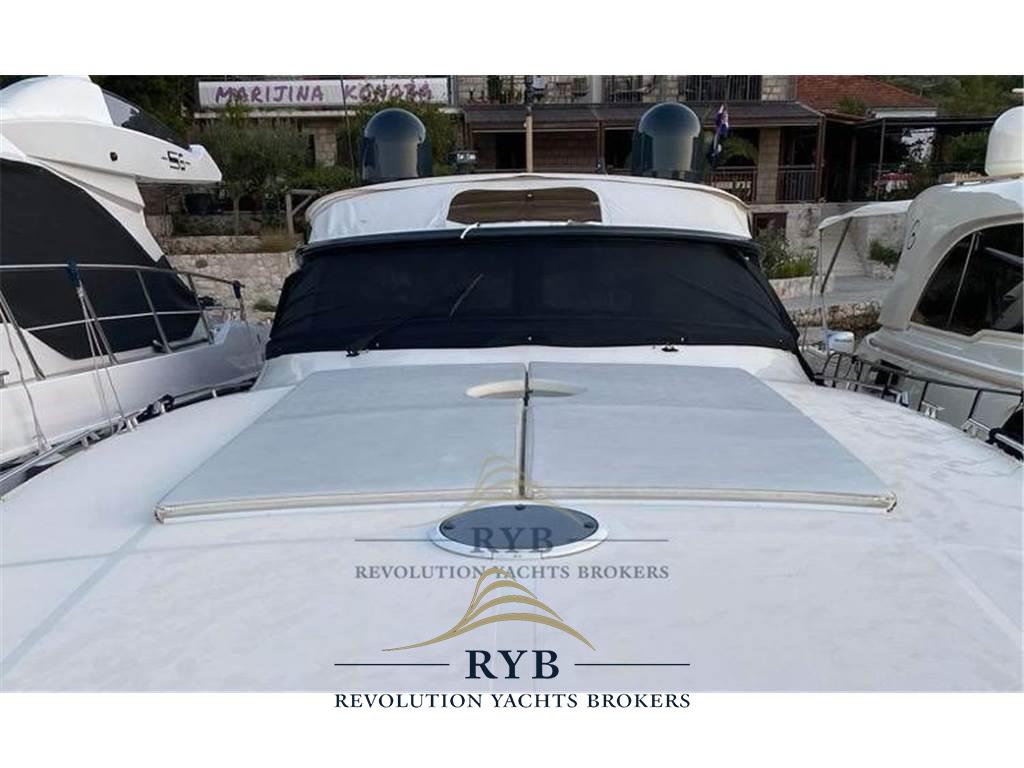 Allarme motore, Ancora, Colorazione speciale, Doccia esterna, Elica di prua - bow thruster, Faro orientabile, Flap idraulici, Gruette per tender, Indicatori Flaps, Lavandino nel Pozzetto, Luci di cortesia, Passerella, Piattaforma, Pompa di sentina automatica, Pompa di sentina elettrica, Pompa di sentina manuale, Pozzetto Teak, Presa 220V banchina, Presa acqua banchina, Salpa Ancore Elettrico, Scaletta da bagno, Tavolo pozzetto, Tavolo Salone Abbattibile, Tromba, Winch tonneggio di poppa.