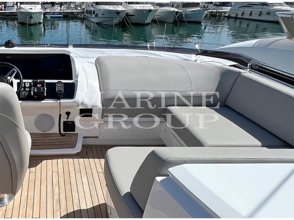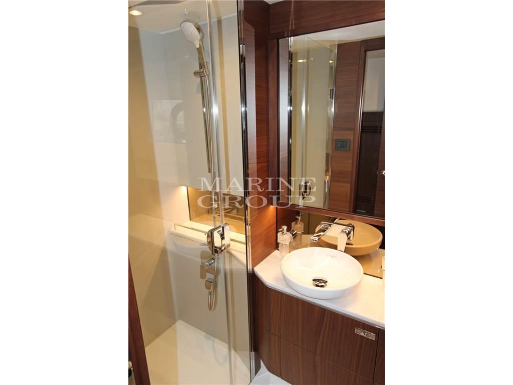 Elica di poppa e di prua a velocità variabile – Stabilizzatore Seakeeper NG9 – Dissalatore - Scafo bianco – Interni in noce con finiture satinate – Allestimento cabina marinaio – Cabina ospiti con letti singoli convertibili in matrimoniale – Cassaforte nella cabina armatoriale - Upgrade pavimento in legno noce nel salone e nella consolle – Upgrade piano cucina in Carrara white - Upgrade divani in salone, dinette e cabina armatore in pelle - Pavimento Sportbridge in Teak – Tavolino da caffè a prua in teak – Verricelli di poppa elettrici per ormeggio (2) – Passerella elettroidraulica telescopica 3,5 mt – Hard top apribile in salone – Tendalino elettrico per il pozzetto, colore grigio – Terza stazione di controllo in pozzetto - Aggiunta di 20 mt di catena per ancora, totale 60 mt – Upgrade per generatore ONAN da 17,5 kW - Lavastoviglie in cucina - BBQ elettrico sullo Sportbridge - Fabbricatore di ghiaccio nel salone - Lavasciuga - Upgrade pacchetto luci esterne con luci addizionali sui passaggi laterali e poppa - Telecamere nella sala macchine e in pozzetto - Upgrade per fuochi induzione MIELE in cucina - Tv in salone, cabina armatoriale e VIP - Tv Sat - Contacatena – Aria condizionata caldo/freddo (82,000 BTU) – Aria condizionata caldo/freddo cabina equipaggio (6,000 BTU) - Zanzariere in tutti gli oblò apribili - Coperture esterne in Grey canvas – Bimini Top in Grey canvas con upgrade luci regolabili - Cuscineria pozzetto, sport fly e prua in Comfort Exterior III Vogue - Scarico acque nere cabina equipaggio collegato alle casse acque nere
