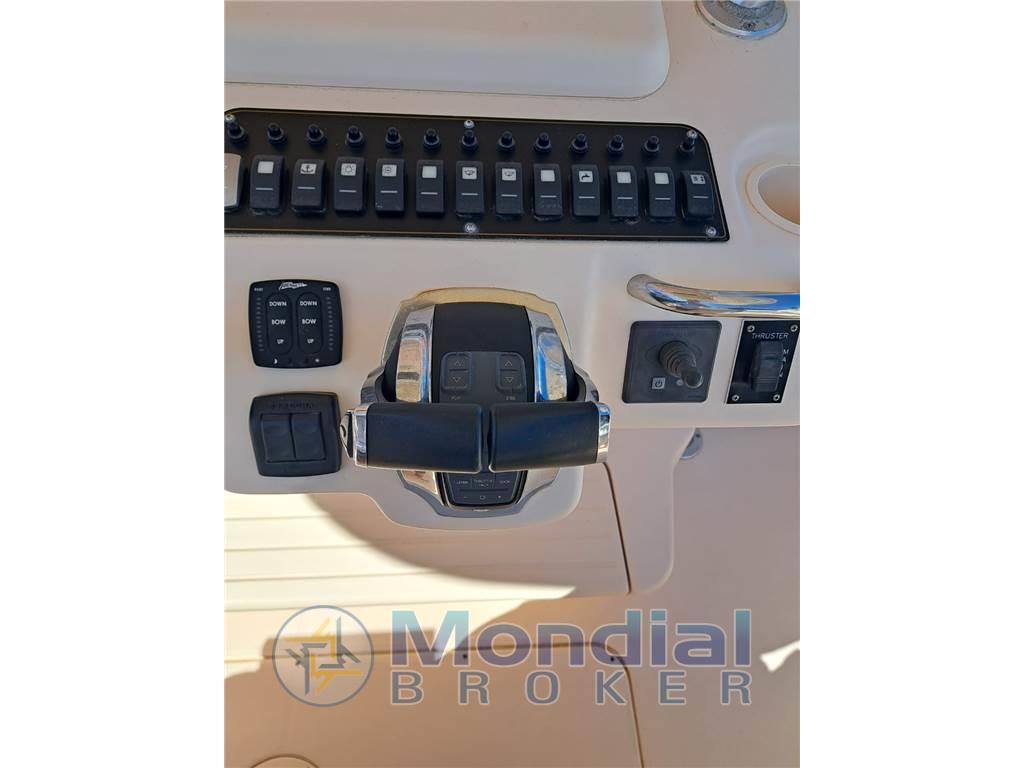 T – TOP CON PORTACANNE E LUCI IN POZZETTO – BATTAGLIOLA INOX 316 – FLAPS RIENTRANTI IN CARENA – DIVERGENTI TELESCOPICI - PRESE 12 V PER MULINELLI ELETTRICI – TRASDUTTORE ECO A RASO – RISCALDAMENTO E ARIA CONDIZIONATA - ELICHE INOX
