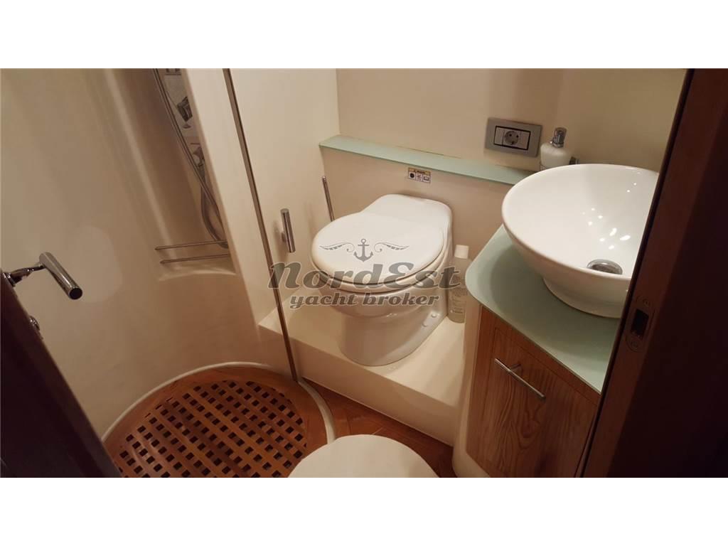 L'imbarcazione è equipaggiata con un generatore Mase da 6 kW, elica di prua, aria condizionata e riscaldamento.
