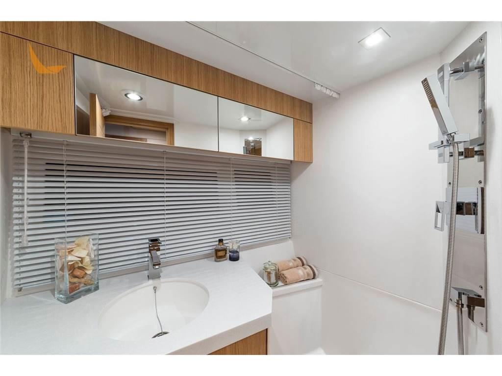 Il 370 è un natante con tre cabine (2 matrimoniali ed una con i letti a castello) ed un bagno con doccia.