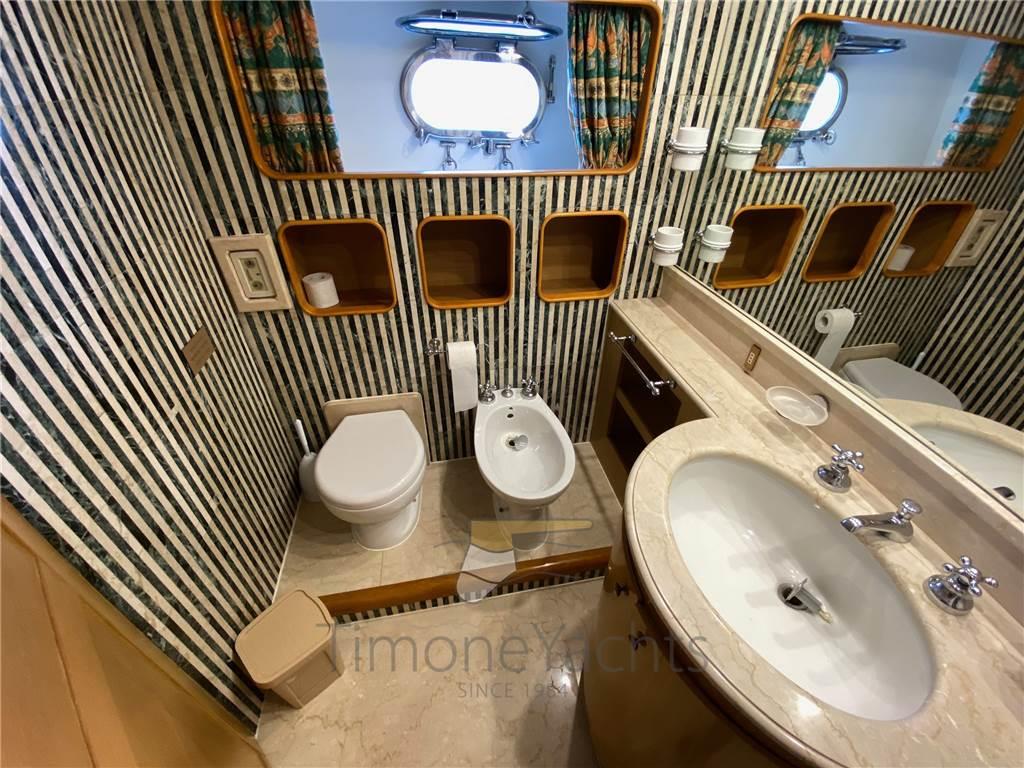 I volumi sono abbondanti, così come il comfort di bordo. Può ospitare 12 ospiti in 5 cabine + 6 membri dell'equipaggio in 3 cabine. Caratteristiche interessanti sono una seconda cucina sul ponte principale e un bagno diurno con doccia e bidet lungo il camminamento di sinistra: così grande che non si potrebbe definire "da diurno". Il flybridge è infinito: una volta in acqua i due grandi tender, è facile ospitare una festa con oltre 100 ospiti.