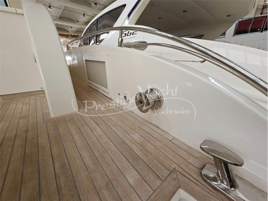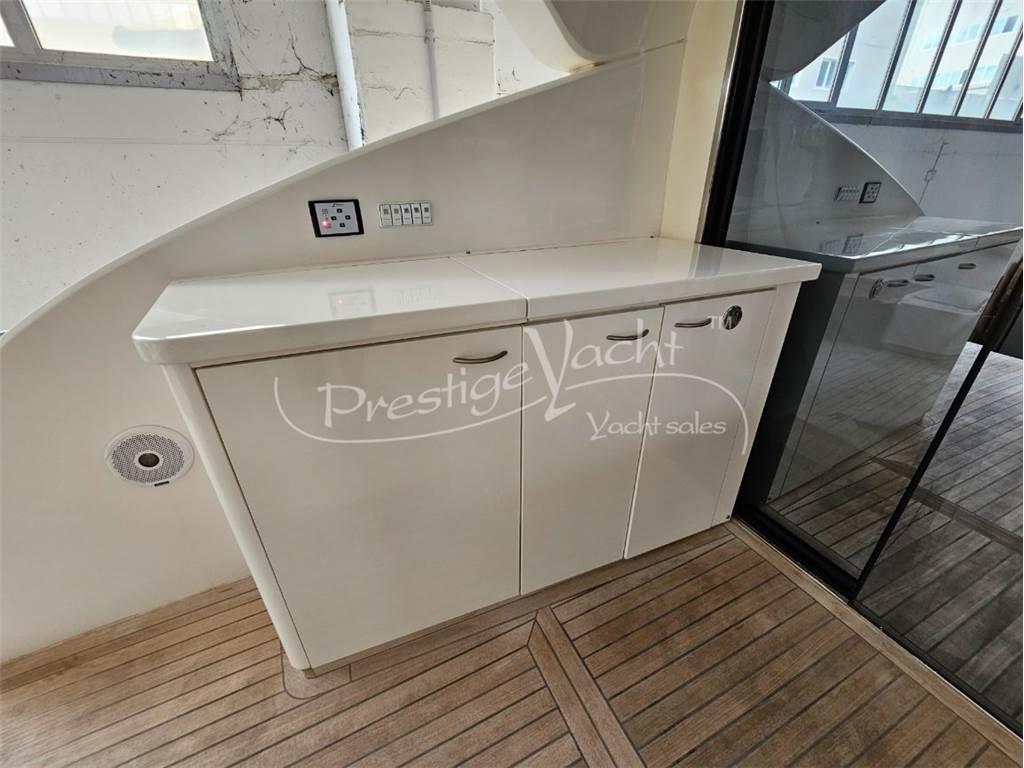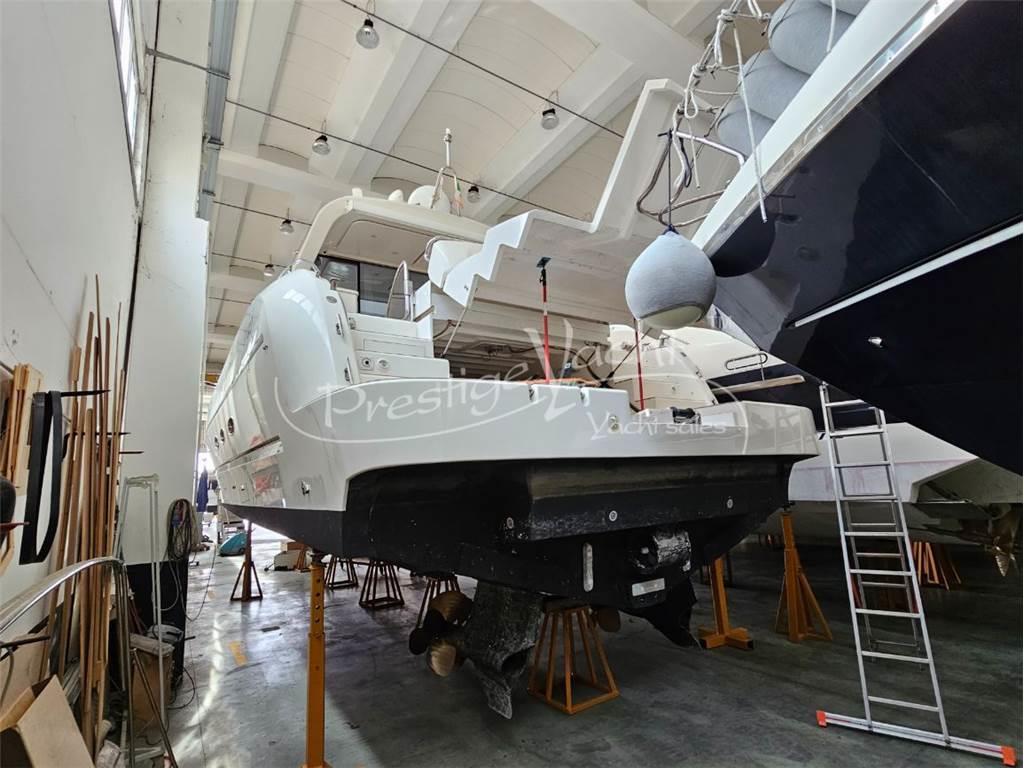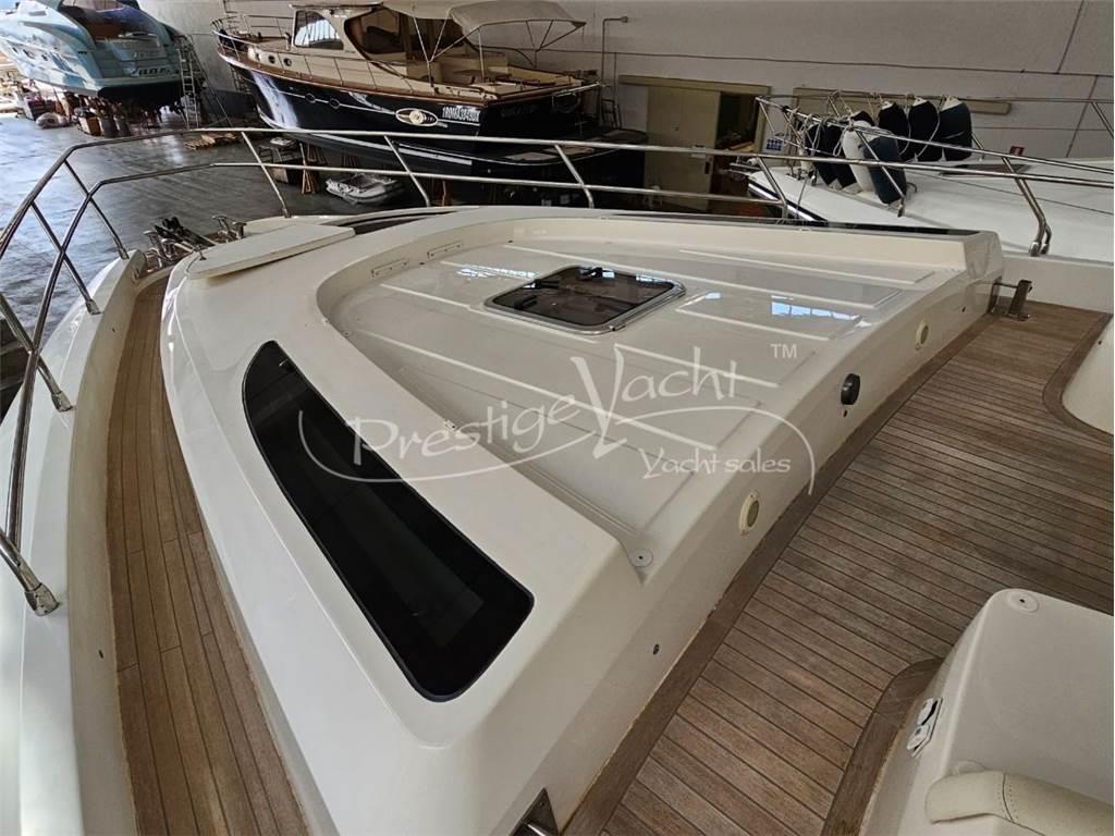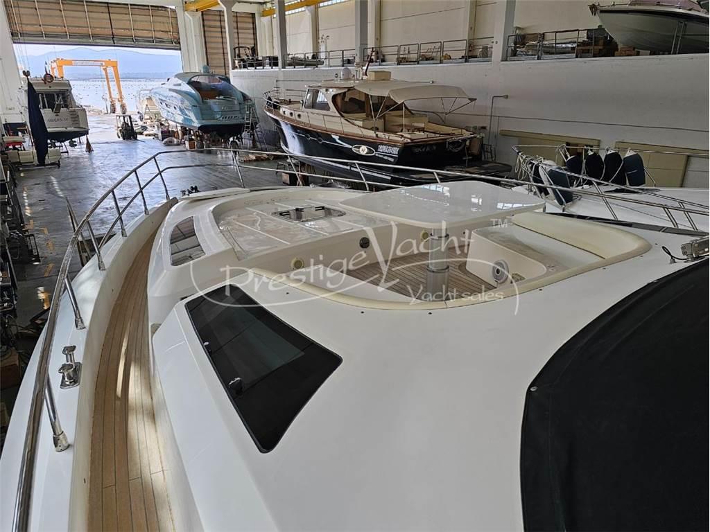 Allarme motore, Allarme sentina, Autoclave, Camminamenti laterali in teak, 2 Caricabatterie, Doccia esterna, Elica di poppa, Elica di prua, Faro orientabile, Flap elettrici (intruder Volvo Penta), Garage per tender, Hard Top, Impianto antincendio, Indicatori flaps, Lavaggio catena, Luci di cortesia, Luci subacquee, Passerella (idraulica a scomparsa), Piattaforma, 5 Pompa di sentina automatica, 2 Pompa di sentina elettrica, Porta di ingresso, Pozzetto in teak, Presa 220V banchina, Presa acqua banchina, Rollbar, Salpa ancora elettrico, Scaletta da bagno, Tavolo in pozzetto (a sollevamento idraulico), Tender, 2 Winch tonneggio di poppa, Winch tonneggio di prua congelatore, Cucina, Frigorifero esterno, Frigorifero interno, Ghiacciaia, Lavastoviglie, Lavatrice, Macchina caffè, Microonde, Piastra in vetroceramica Boiler, Clima reversibile, Impianto acque nere, Inverter, Prese interne 12V, Prese interne 220V, 4 Wc marino elettrico Altoparlanti, Antenna satellitare, Decoder satellitare, Digitale terrestre, DVD, Impianto TV, Ricevitore satellitare, Stereo (Fusion), 4 TV AIS, Angolo barra, Antenna radar, Bussola, Comando motori elettronico, Computer di bordo, Contametri catena, DSC vhf, Ecoscandaglio, GPS, Interfaccia, Joystick, Pilota automatico, 2 Plotter (Raymarine), Radar, Radio VHF Copripozzetto, Cuscineria di poppa, Cuscineria di prua, Cuscineria pozzetto, Tenda elettrica (poppa), Tendalino
