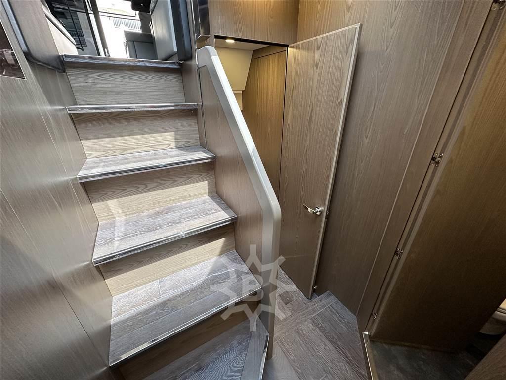 Allarme motore, Allarme sentina, Ancora (in acciaio da 35 kg), Angolo barra, Antenna radar (opt. colore nero), Auto Dynamic Trim Interceptor, Autoclave, Auto-Trim (Volvo Penta), 6 Batterie, Bussola, Camminamenti laterali in teak, Caricabatterie (40 Ah), Colorazione speciale, Comando motori elettronico, Computer di bordo (per controllo domotica), Contametri catena, Doccia esterna, Doppia timoneria, DSC vhf, Ecoscandaglio, Elica di prua - bow thruster (con impianto antincendio), Faro orientabile, Flap elettrici, GPS (Garmin), Indicatori Flaps, 2 Joystick (Volvo Penta IPS), Log, Luci di cortesia, Luci di navigazione, 5 Luci subacquee, Passerella (idraulica), Piattaforma (affondabile in teak), Pilota automatico (Garmin), 2 Plotter con antenna GPS (Garmin), Pompa di sentina automatica, Pompa di sentina elettrica, Pompa di sentina manuale, Ponte in teak, Porta laterale, Pozzetto Teak, Presa 220V banchina, Presa acqua banchina, Radar (Garmin), Radio VHF, Salpa Ancore Elettrico, Scaletta da bagno, Sedile Copilota, Selle per Tender, Stabilizzatori (Seakeeper 6), Tavolo pozzetto (in teak con cover), Tavolo Salone Abbattibile, Tender, Tromba, Tuga in teak, 2 Winch tonneggio di poppa (1000W), Winch tonneggio di prua