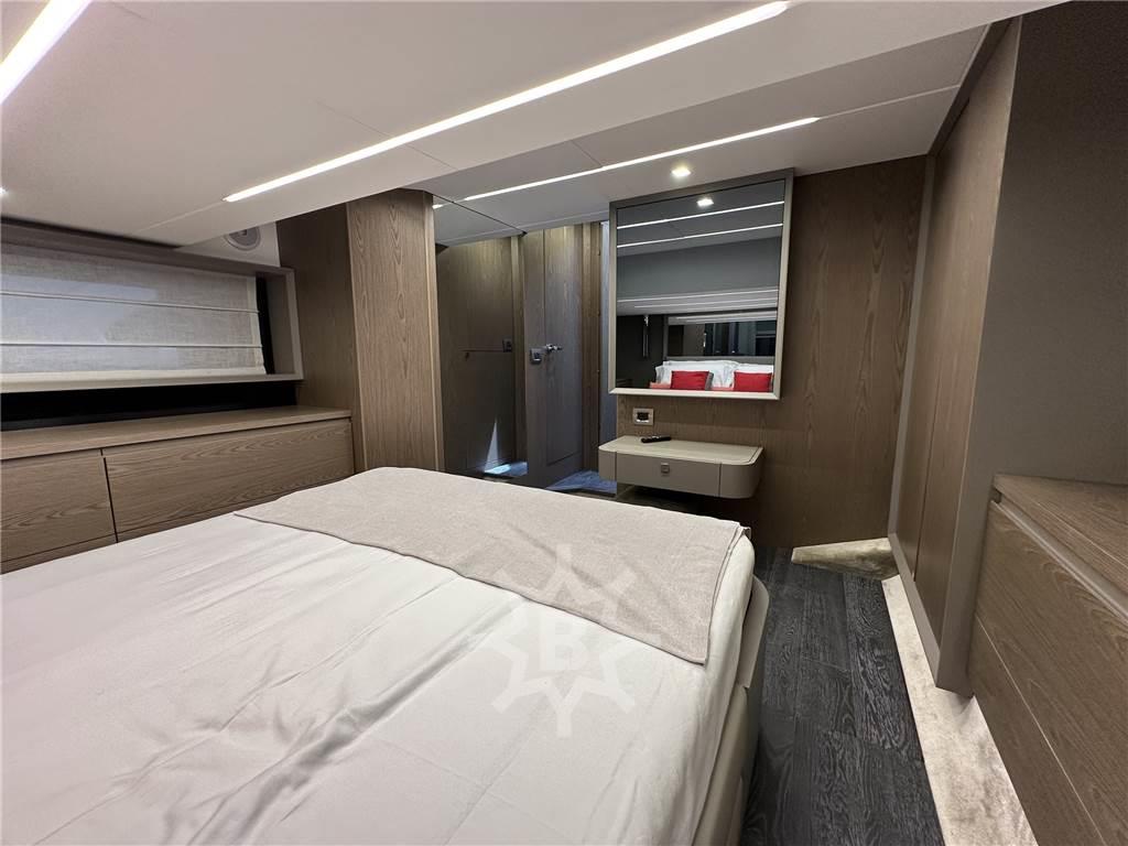 Altoparlanti, Antenna Satellitare TV, Aria condizionata (60.000 BTU), BBQ/ Grill, 2 Bimini (prendisole di prua + flybridge con luci di cortesia), Boiler, Cassaforte, Clima reversibile, Congelatore, Cucina, Cuscineria completa, Dimmer per Luci, DVD, Forno, Frigorifero esterno, Frigorifero interno, Home Theater (in salone), ICE Maker, Impianto acque nere, Impianto TV, Inverter, Lavasciuga, Lavastoviglie, Meccanismo saliscendi per TV (in salone), Microonde, Oscuranti (interni), Pavimento interno in legno (in salone, discesa scale e cabine), Piastra elettrica, Prese interne 12v, Prese interne 220v, Radio AM/FM (+ Bluethooth + USB), Serbatoio Acque Nere, Stereo (Radio FM/AM USB con altoparlanti in pozzetto e sul flybridge), Teli copri finestra, Telo copriconsolle, Telo coprisedile, Tenda Elettrica (in pozzetto), 4 TV (43" in salone + 32" in cabina armatore + 28" in cabina vip + 28" in cabina ospiti), 3 WC marino elettrico, Winecooler, Zanzariere