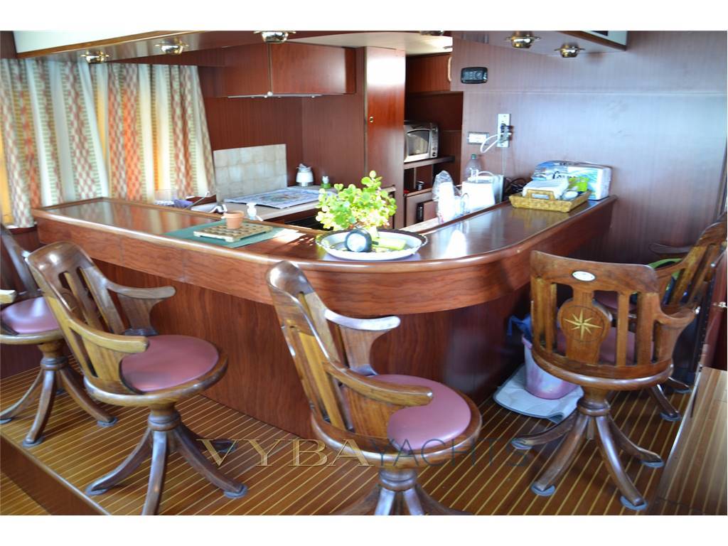 Galley area accessible to bar area and also accessible from aft saloon to starboard.