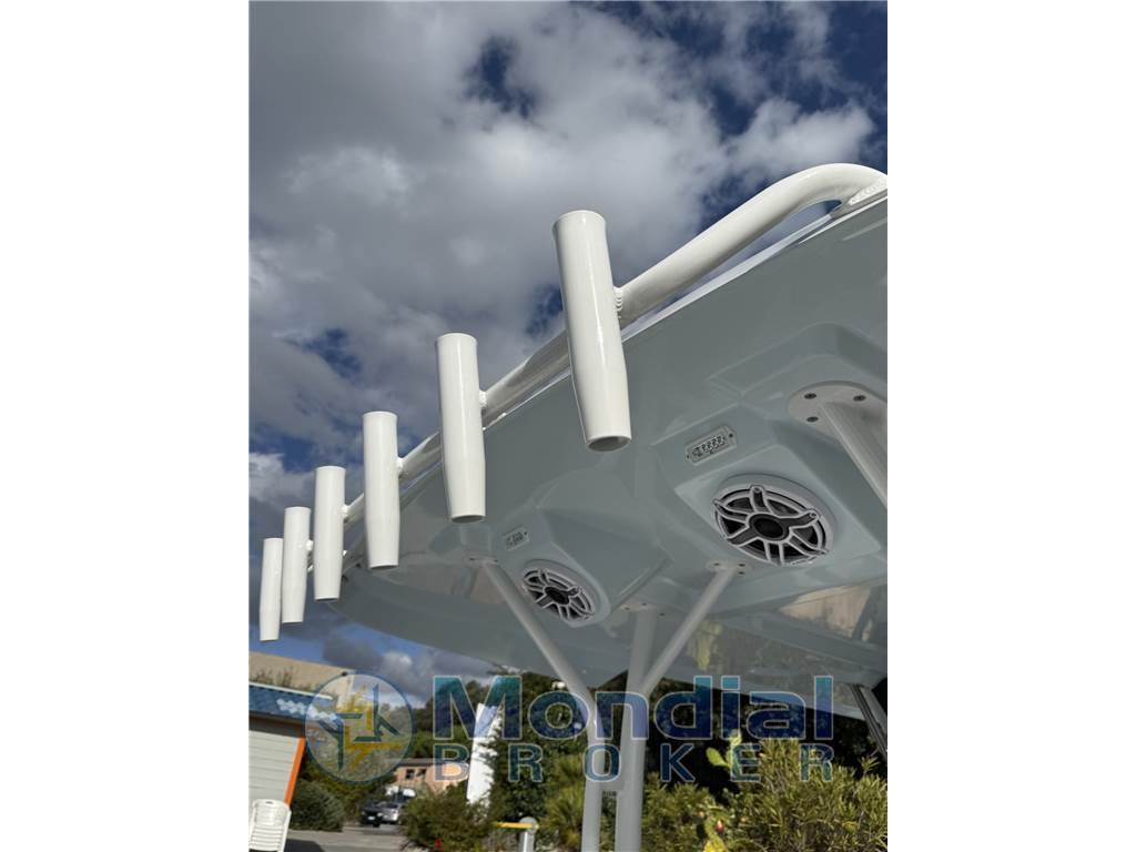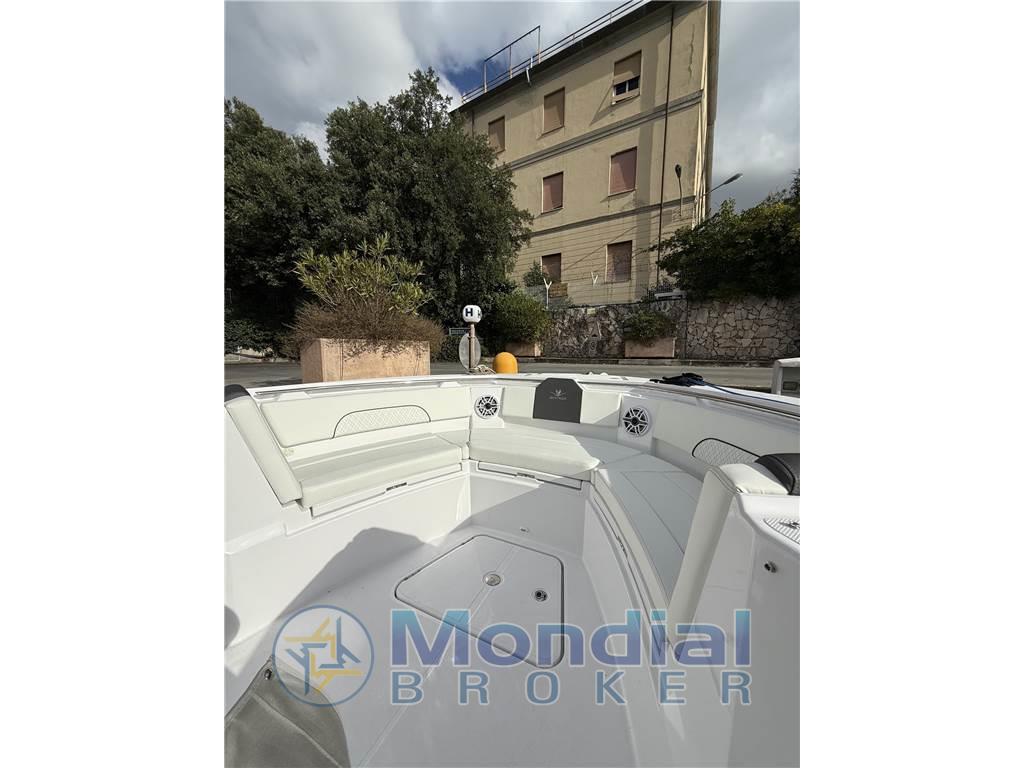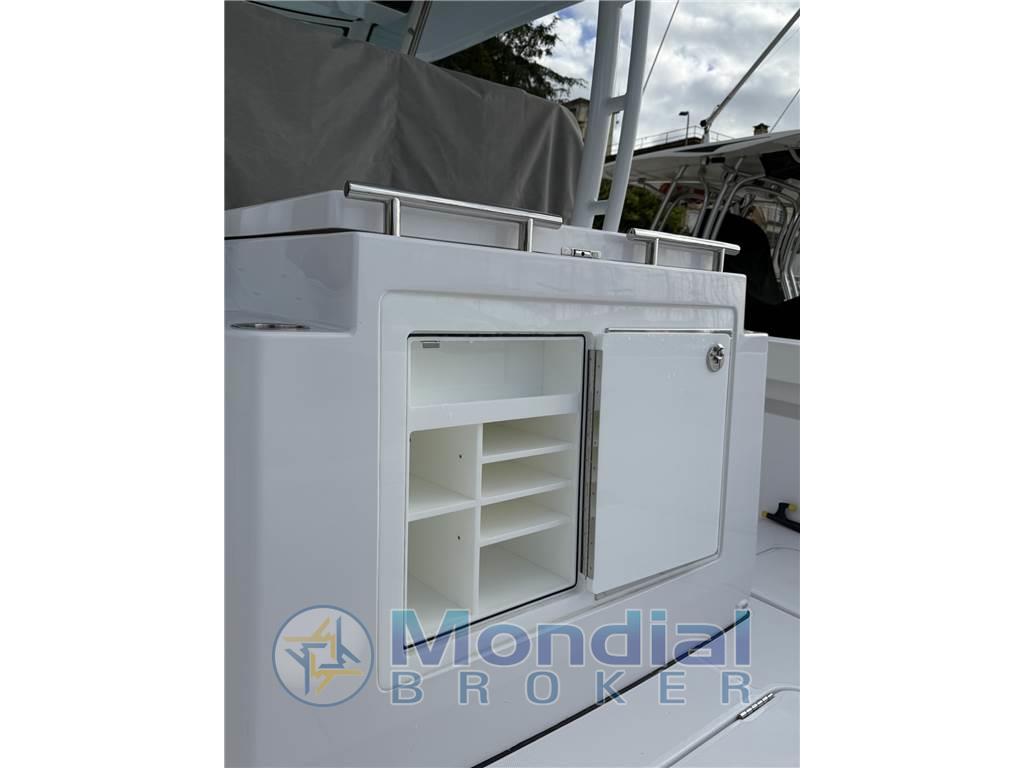 Barca motorizzata con N°2 Mercury Verado V 10 400 hp JPO, Active Trim, colorazione speciale Ice Blue, Stazione di preparazione esce, portacanne, vasche del vivo e del pescato, sedute con dettagli in Teak, gancio di traino, pacchetto di navigazione Garmin (2 x 8616 trasduttore Airmar B175HW e B175L CHIRP), sistema Audio Premium, Luci subacque.