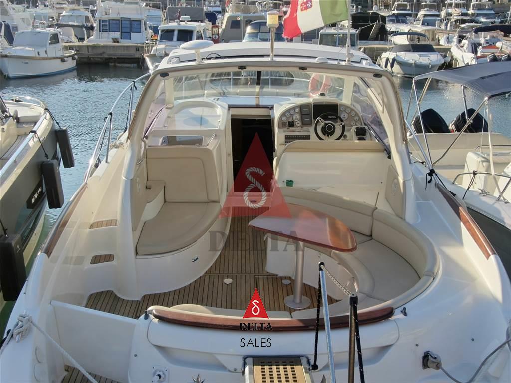 Allarme motore, Ancora, Autoclave, Batterie, Bussola, Caricabatterie, Contametri catena, Contamiglia, Doccia esterna, Ecoscandaglio, Elica di prua - bow thruster, Flap elettrici, GPS, Hard top, Indicatori Flaps, Luci di cortesia, Luci di navigazione, Passerella (Idraulica), Piattaforma, Pilota automatico, Plotter, Pompa di sentina automatica, Pompa di sentina manuale, Porta ingresso, Pozzetto Teak, Presa 220V banchina, Presa acqua banchina, Radio VHF, Salpa Ancore Elettrico, Scaletta da bagno, Sedile Copilota, Tavolo pozzetto, Tavolo Salone Abbattibile