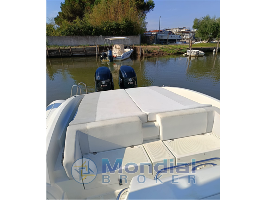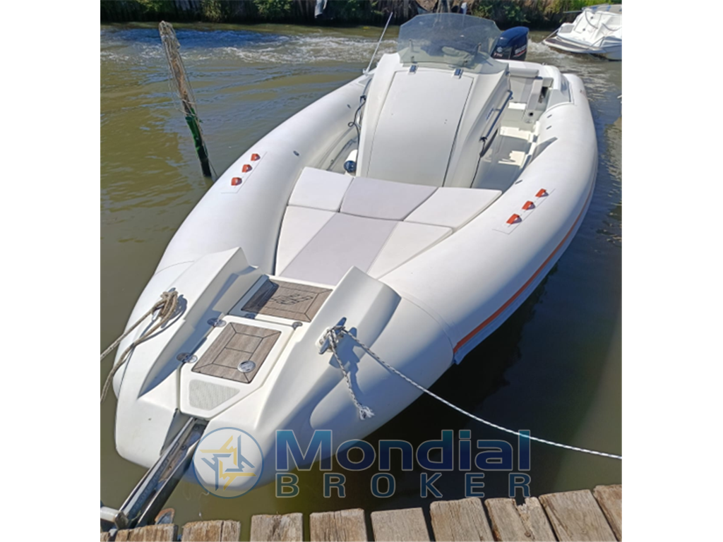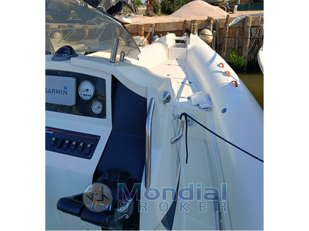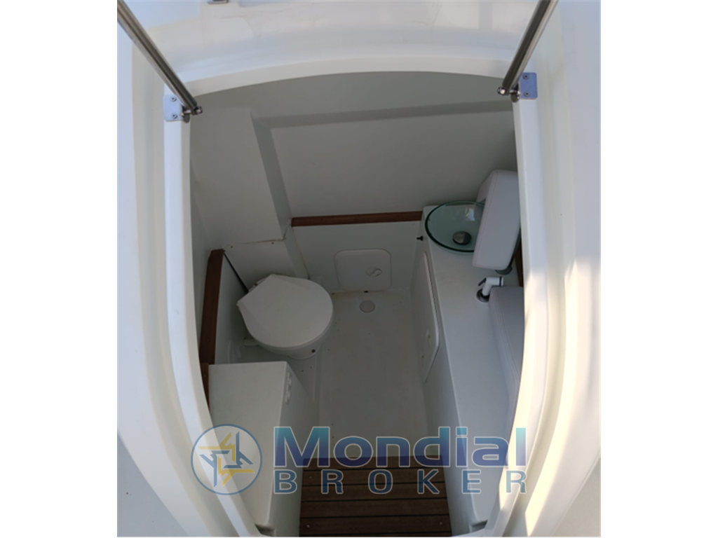 Gommone che si caratterizza per essere sportivo ma molto confortevole avendo il sottocoperta con cabina bagno dotata di WC elettrico, lavabo e doccia a soffitto, con un’altezza interna di circa 1,80 m.