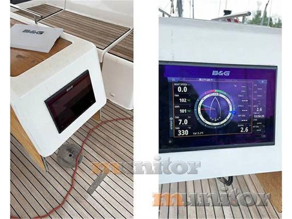 Impianto audio, Pilota automatico, Piattaforma da bagno, Caricabatterie, BBQ, Bimini top, Elica di prua, Doccia in pozzetto, Bussola, Ecoscandaglio, Salpa ancora, Parabordi, Plotter GPS, Impianto acqua calda, TV LCD, Forno, Frigorifero, Divani in pelle, Capottina paraspruzzi, Teak di poppa, Fornello, Teak in pozzetto, VHF, Indicatore vento