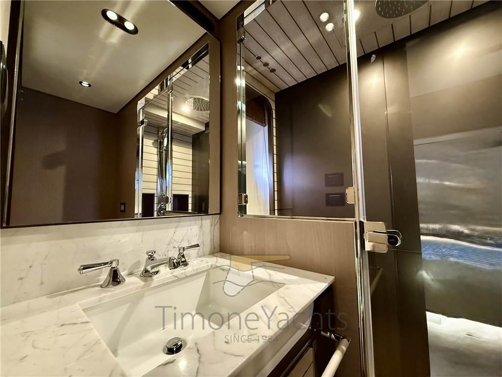 Allarme fumo/gas, Allarme motore, Allarme sentina, Alternatore, Ancora, Auto Dynamic Trim Interceptor, Camminamenti laterali in teak, Cavo corrente di banchina, Colorazione speciale, Corrimano, Doccia esterna, Doppia timoneria, Elica di poppa - stern thruster, Elica di prua - bow thruster, Flap elettrici, Garage per tender, Hard top, Lavaggio catena, Luci subacquee, Passerella, Piattaforma, Pompa di sentina automatica, Pompa di sentina elettrica, Ponte in teak, Porta ingresso, Porta laterale, Pozzetto Teak, Presa 220V banchina, Presa acqua banchina, Salpa Ancore Idraulico, Scaletta da bagno, Stabilizzatori (Zerospeed), Tavolo pozzetto, Tientibene con cancelletti, Tromba, Winch tonneggio di poppa, Winch tonneggio di prua.