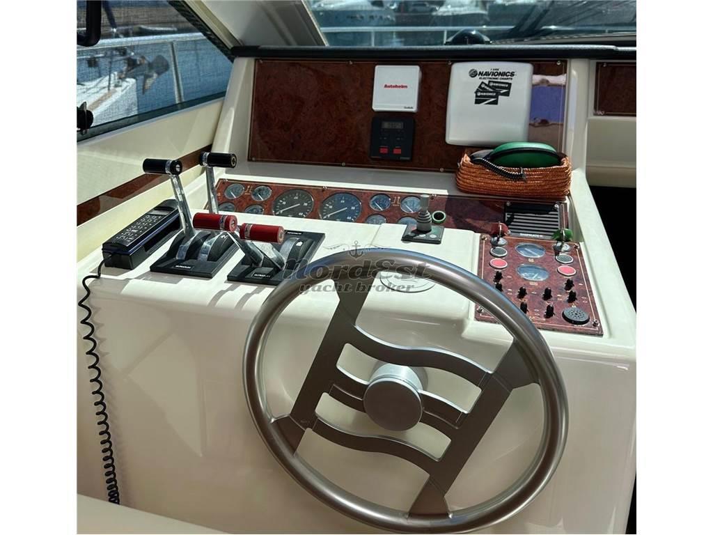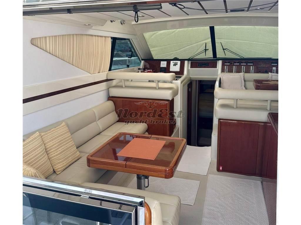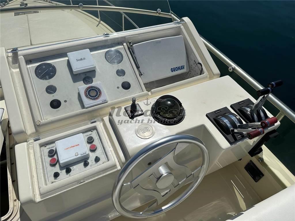 Imbarcazione molto curata, motori in perfette condizioni. Line asse diretta senza V-Drive. Tenute idrodinamiche seminuove, motori con circa 1780 ore, sempre controllati e seguiti costantemente, sala macchine pulita ed in ordine. Tappezzeria interna in ottimo stato, copri finestrature nere e materassi prendisole in buono stato. Elica di prua e generatore da 3.5 kw. Tender con motore 10hp incluso. Disponibilità immediata.