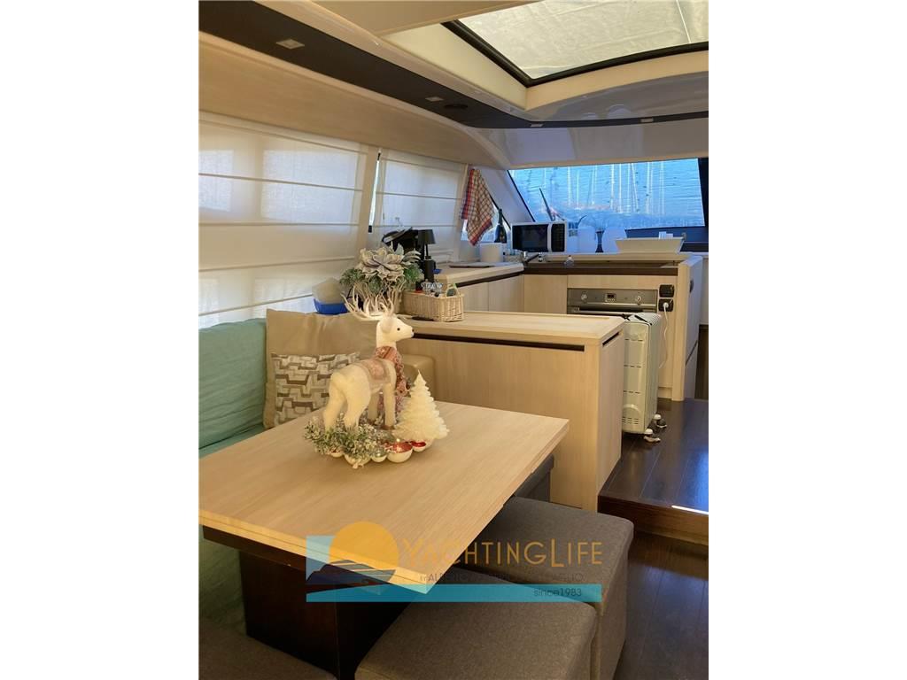 2 Matrimoniale italiana, 1 Matrimoniale francese, 1 Cabina equipaggio, 1 Dinette, 1 Cucina, 1 Toilette Equipaggio, 2 Toilette doccia no bidet