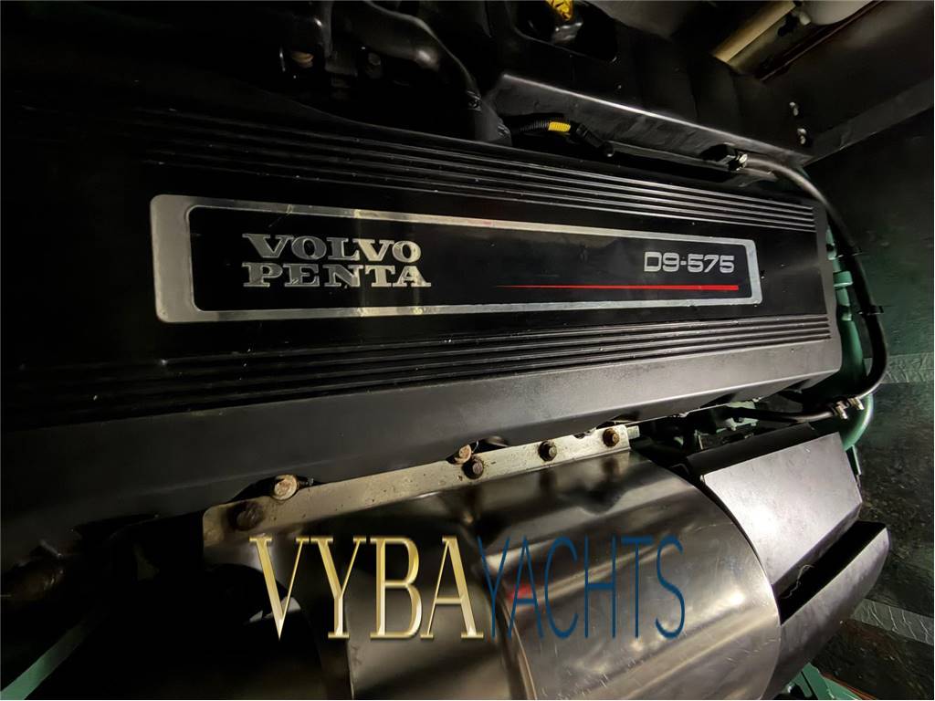 Powered by a robust Volvo Penta D9-575 inboard engine, delivering 575 horsepower, this cruiser promises exhilarating performance with a direct drive system.