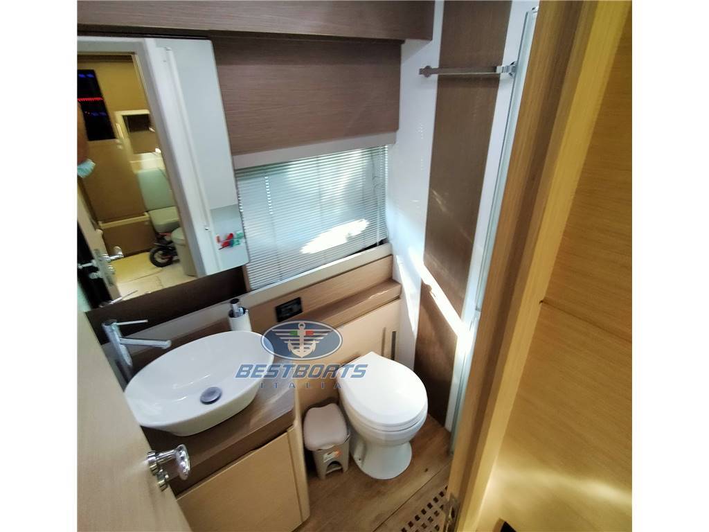 TV in pozzetto a scomparsa, Tavolo in pozzetto in massello, Boiler acqua calda, Serbatoio acque nere e serbatoio acque grigie, Doccia esterna calda e fredda con miscelatore, Prendisole a poppa e prua completo