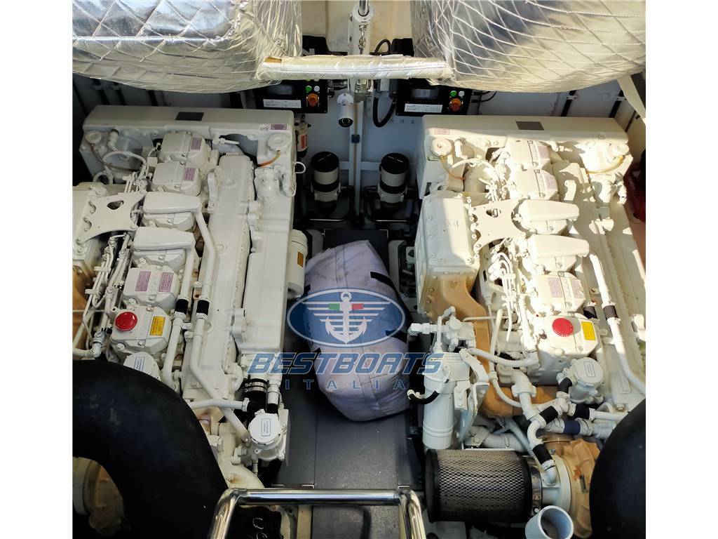 Computer motori, GPS plotter cartografico touch screen, Radar, Pilota automatico, profondimetro, Radio VHF, Flaps e trim idraulici con indicatori in plancia, Elica di prua, varie utenze in plancia