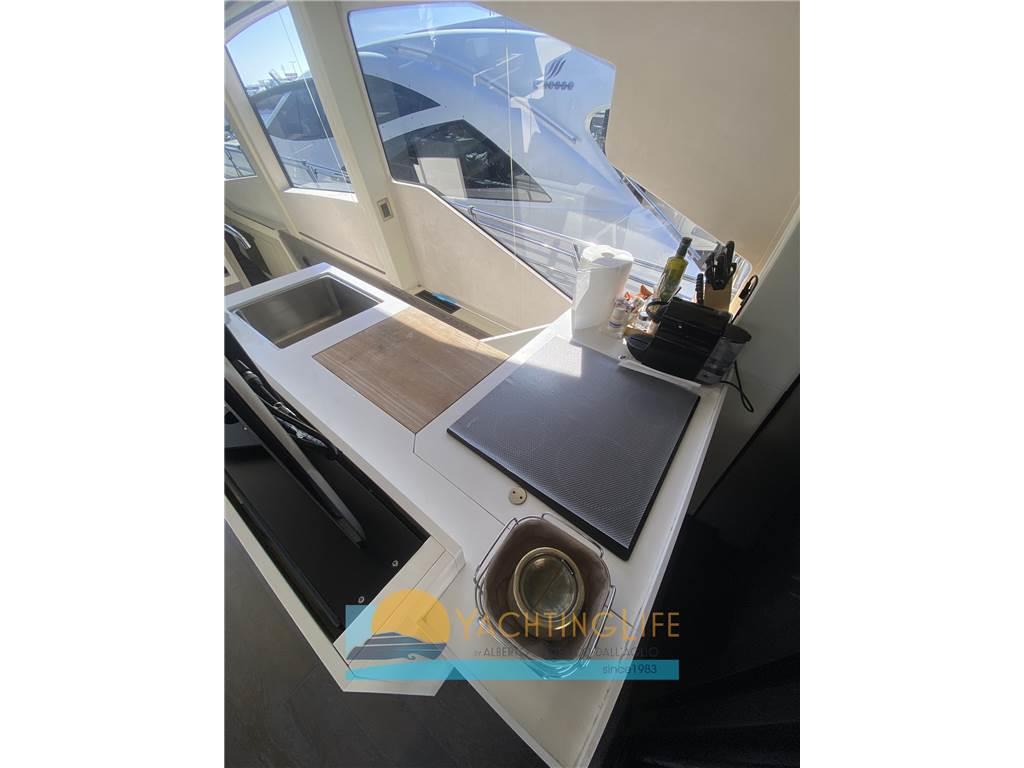 Allarme motore, Allarme sentina, Ancora, Angolo barra, Autoclave, Autogonfiabile, Batterie, Bussola, Camminamenti laterali in teak, Caricabatterie, Colorazione speciale, Computer di bordo, Doccia esterna, Ecoscandaglio, Elica di prua - bow thruster, Flap elettrici, GPS, Hard top, Impianto antincendio, Indicatori Flaps, 2 Joystick, Lavandino nel Pozzetto, Luci di cortesia, Luci subacquee, Passerella (idraulica), Piattaforma (idraulica), Pilota automatico, Pompa di sentina automatica, Pompa di sentina elettrica, Porta ingresso, Pozzetto Teak, Presa 220V banchina, Radio VHF, Salpa Ancore Elettrico, Scaletta da bagno, Tavolo pozzetto, Tromba, Winch tonneggio di poppa