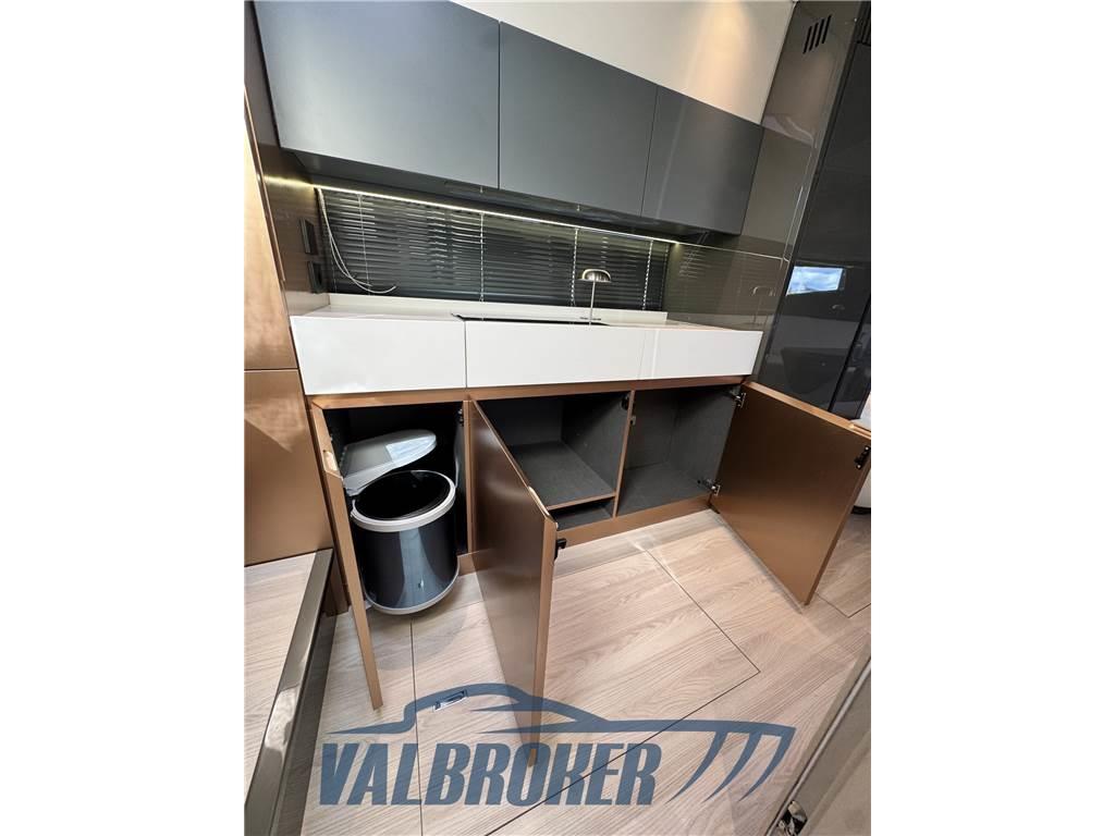 Linee accattivanti abbinate ad ampio parabrezza ed ottima circolazione dell'aria in pozzetto grazie all'Hard Top con apertura lamellare. Offre un'ampia cabina armatoriale a poppa a tutto baglio,un'elegante dinette a prua, trasformabile elettricamente in una vera e propria seconda cabina e due bagni. Gli interni sono moderni con materiali lussuosi e ricercati. Negli esterni l'eleganza del design si fonde perfettamente con lo spirito sportivo di questo nuovo esemplare 100% Made in Italy.