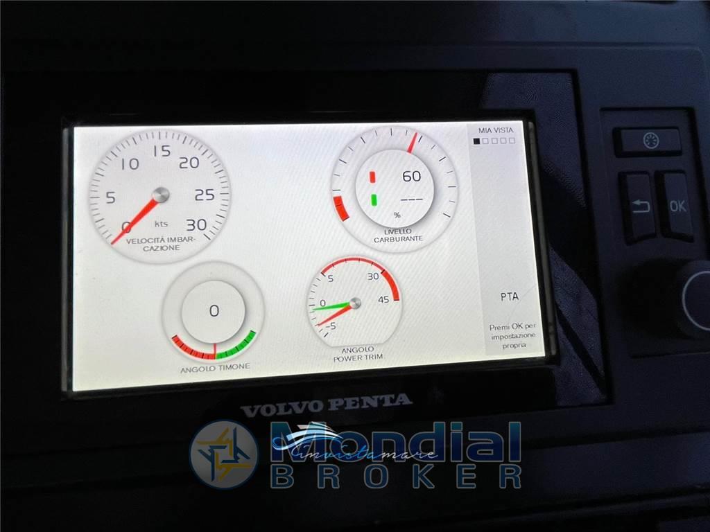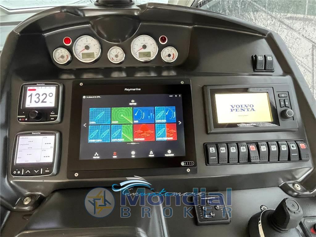 Comando motori elettronico, Contamiglia, Ecoscandaglio, Elica di prua - bow thruster, Flap idraulici, GPS (Rymarine Touch ultima generazione), Passerella (a scomparsa), Pilota automatico, Pompa di sentina automatica, Pozzetto Teak, Radio VHF, Salpa Ancore Elettrico