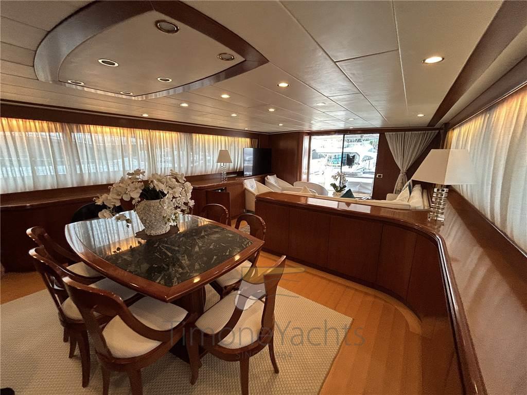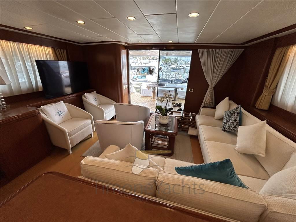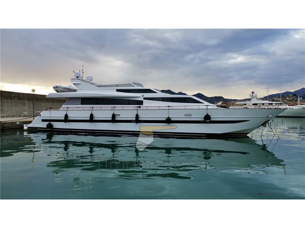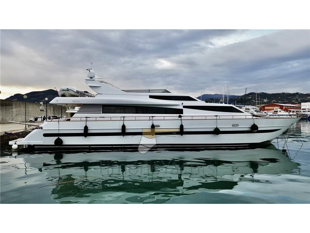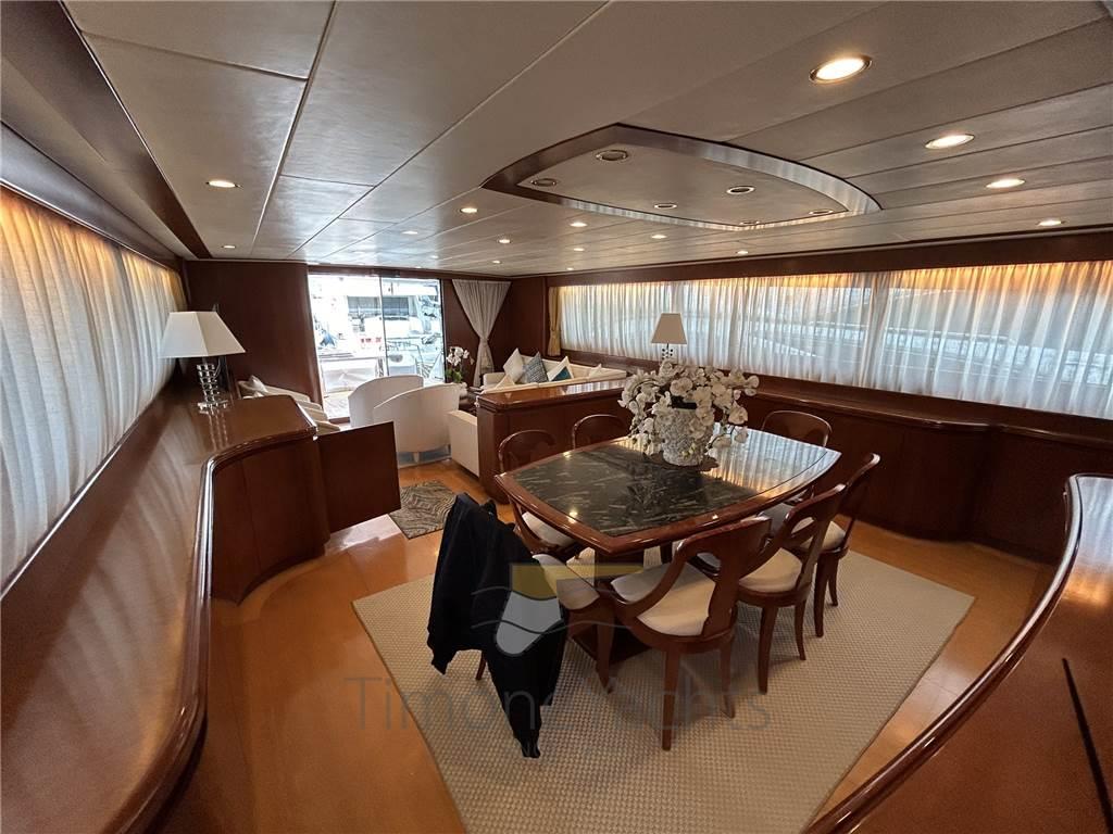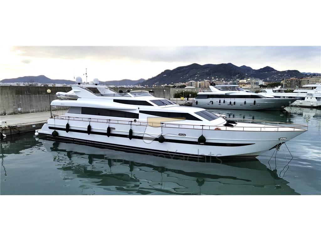 Alternatore, Camminamenti laterali in teak, Elica di poppa - stern thruster, Elica di prua - bow thruster, Faro orientabile, Flap idraulici, Gruette per tender su fly, Impianto antincendio, Indicatori Flaps, Luci di cortesia, Luci subacquee, Passerella, Ponte in teak, 2 Porta laterale, Pozzetto Teak, Presa 220V banchina, Selle per Tender, Tavolo pozzetto, Tender, Tromba, Winch tonneggio di poppa, Winch tonneggio di prua.