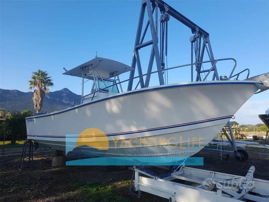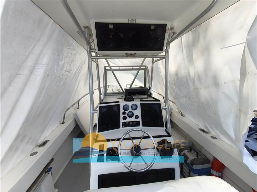 Fisherman del noto cantiere americano dalle indiscutibili doti marine e di solidità costruttiva - Da rimotorizzare e sostituire il serbatoio del carburante - Vano sotto la consolle che può ospitare un bagnetto, al momento usato come stivaggio -